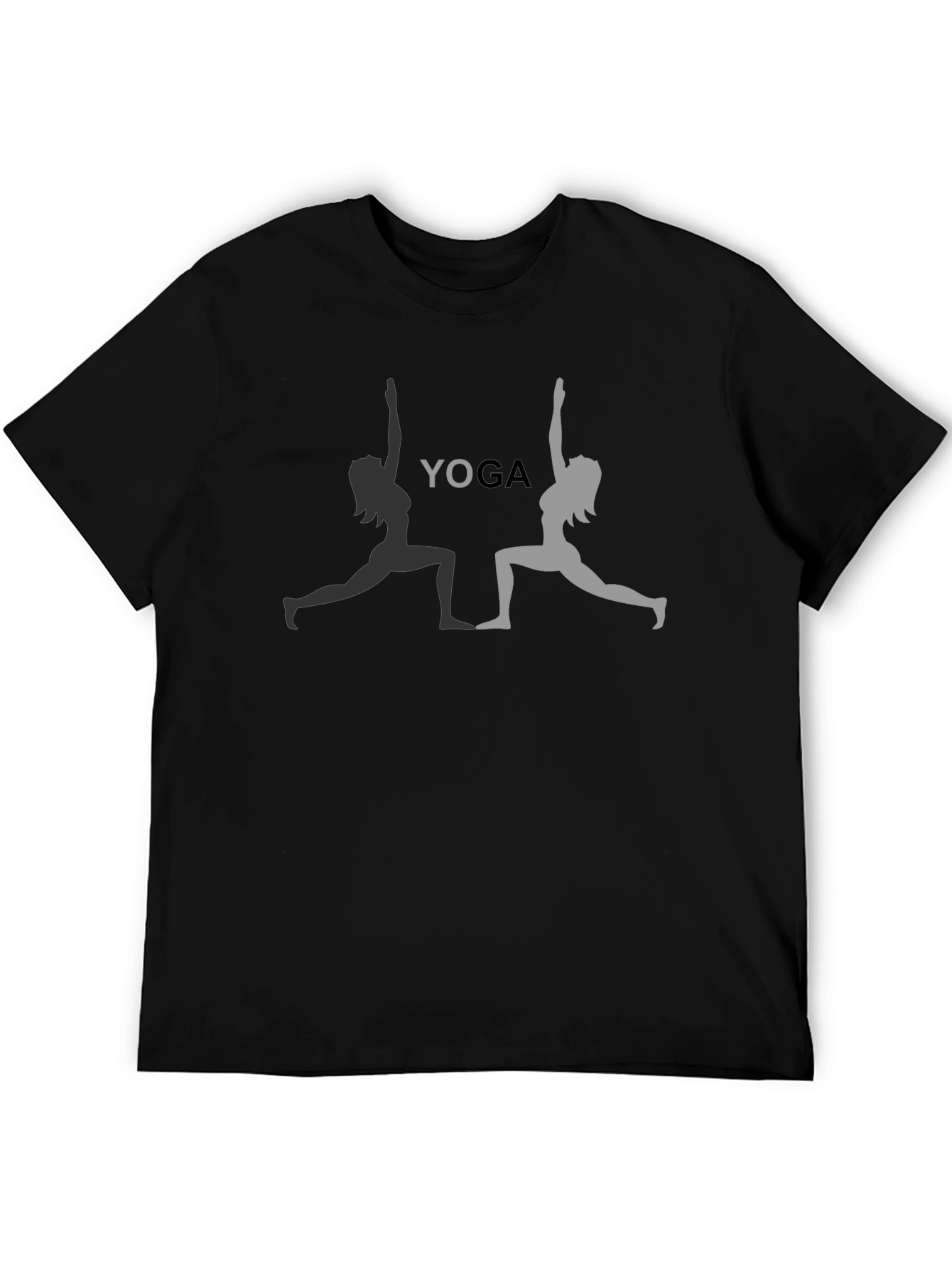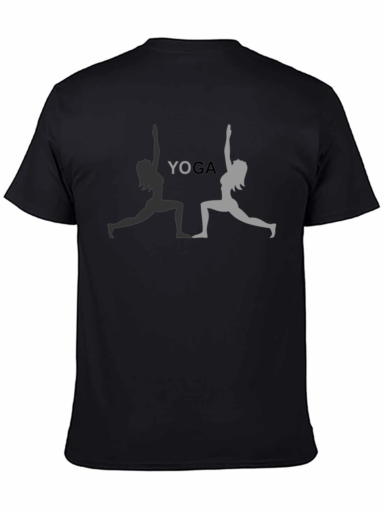 Esta camiseta negra presenta un diseño elegante y moderno con dos siluetas femeninas en poses de yoga, acompañadas de la palabra "YOGA" en el centro. La camiseta parece ser de un material suave y cómodo, ideal para el uso diario o para practicar yoga. Su diseño minimalista la hace versátil y fácil de combinar con cualquier atuendo casual. Perfecta para las amantes del yoga que buscan expresar su pasión por esta disciplina con estilo y sutileza. Una prenda imprescindible para un look relajado y a la moda.