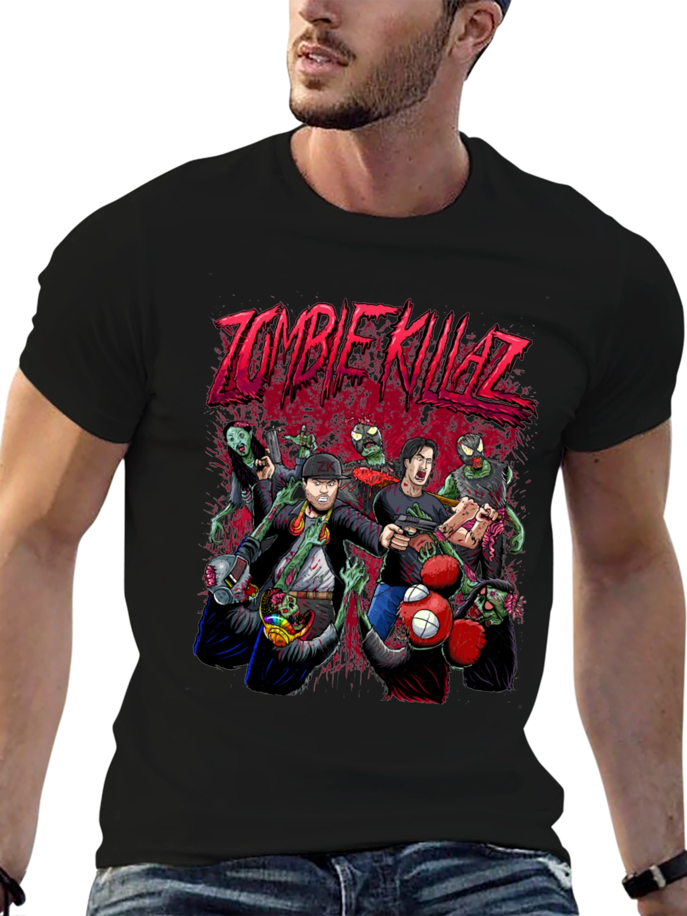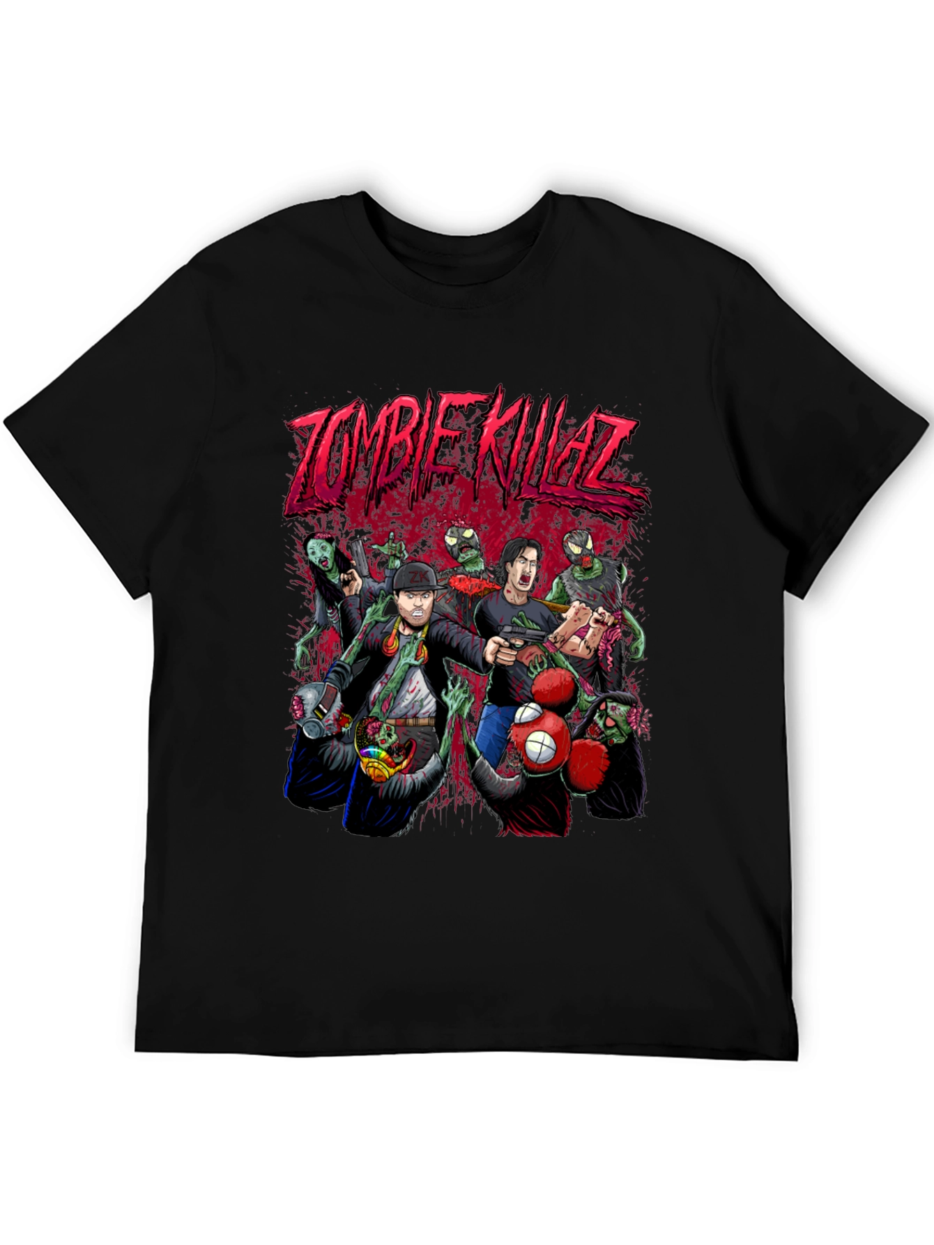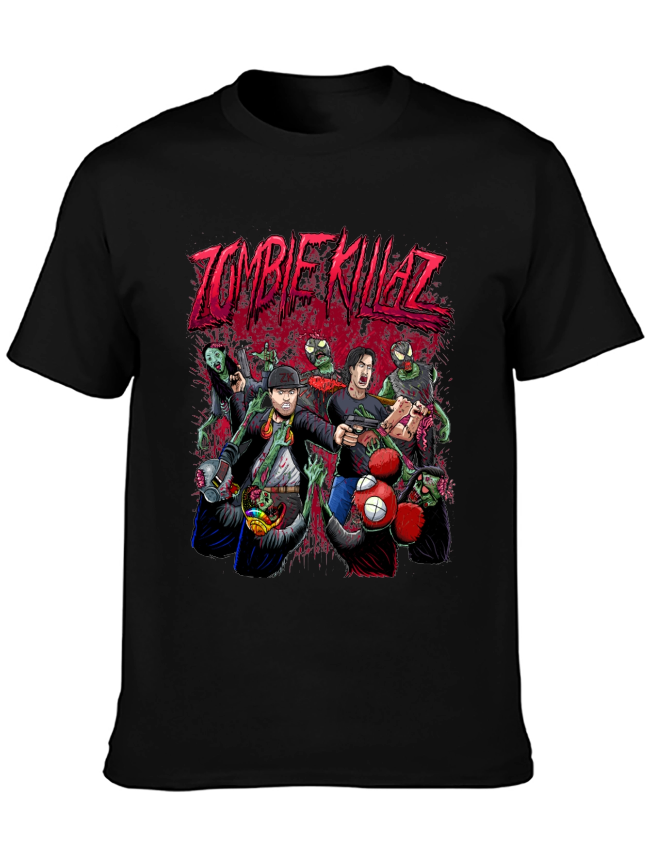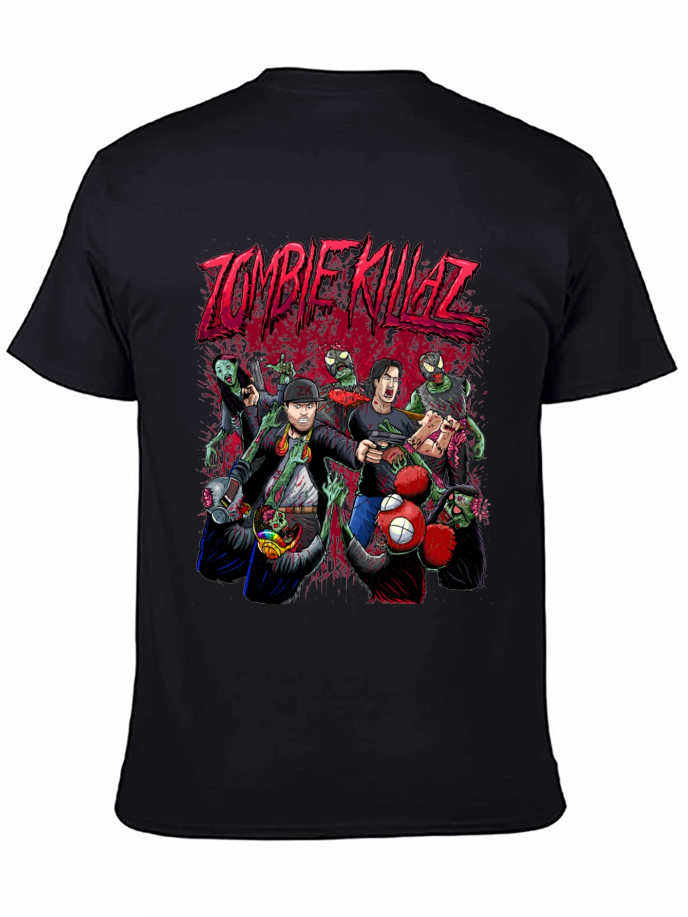 Muestra tu lado más audaz con esta camiseta negra de Zombie Killaz. El diseño presenta una ilustración vibrante y detallada de personajes luchando contra zombies, ideal para fanáticos del horror y la acción. Fabricada con un tejido suave y cómodo, esta camiseta es perfecta para usar a diario o para eventos temáticos. Su corte clásico asegura un ajuste favorecedor para todos. Expresa tu estilo único con esta prenda llamativa y de alta calidad. Perfecta para regalar a amantes de los zombies y videojuegos.