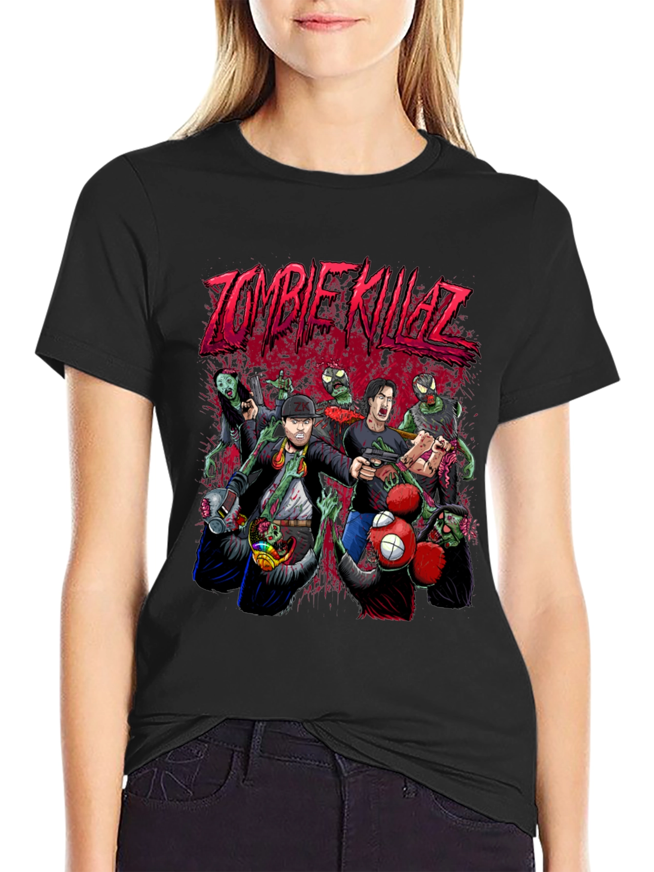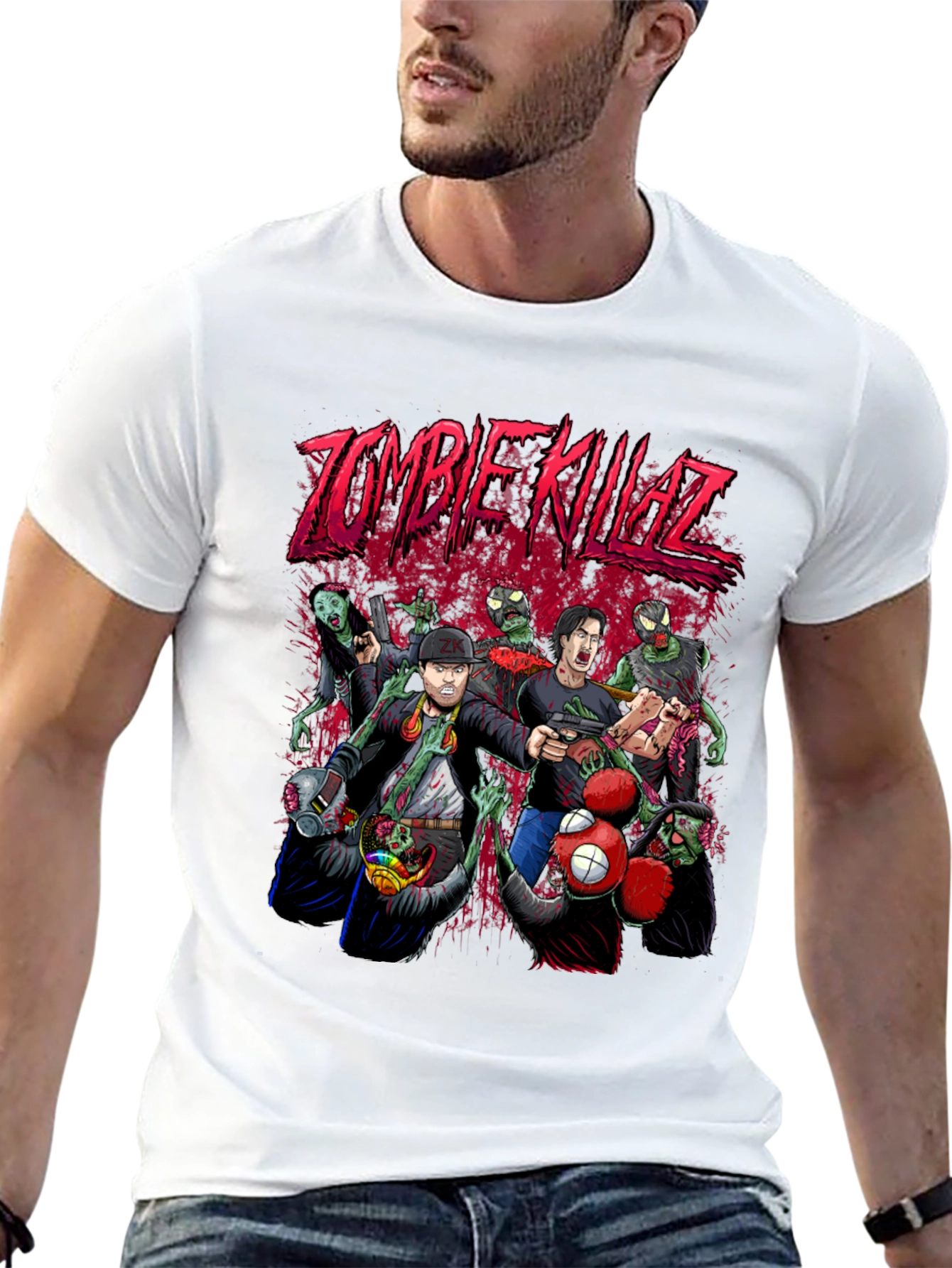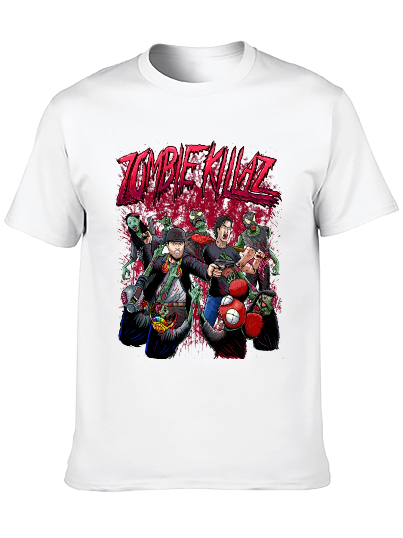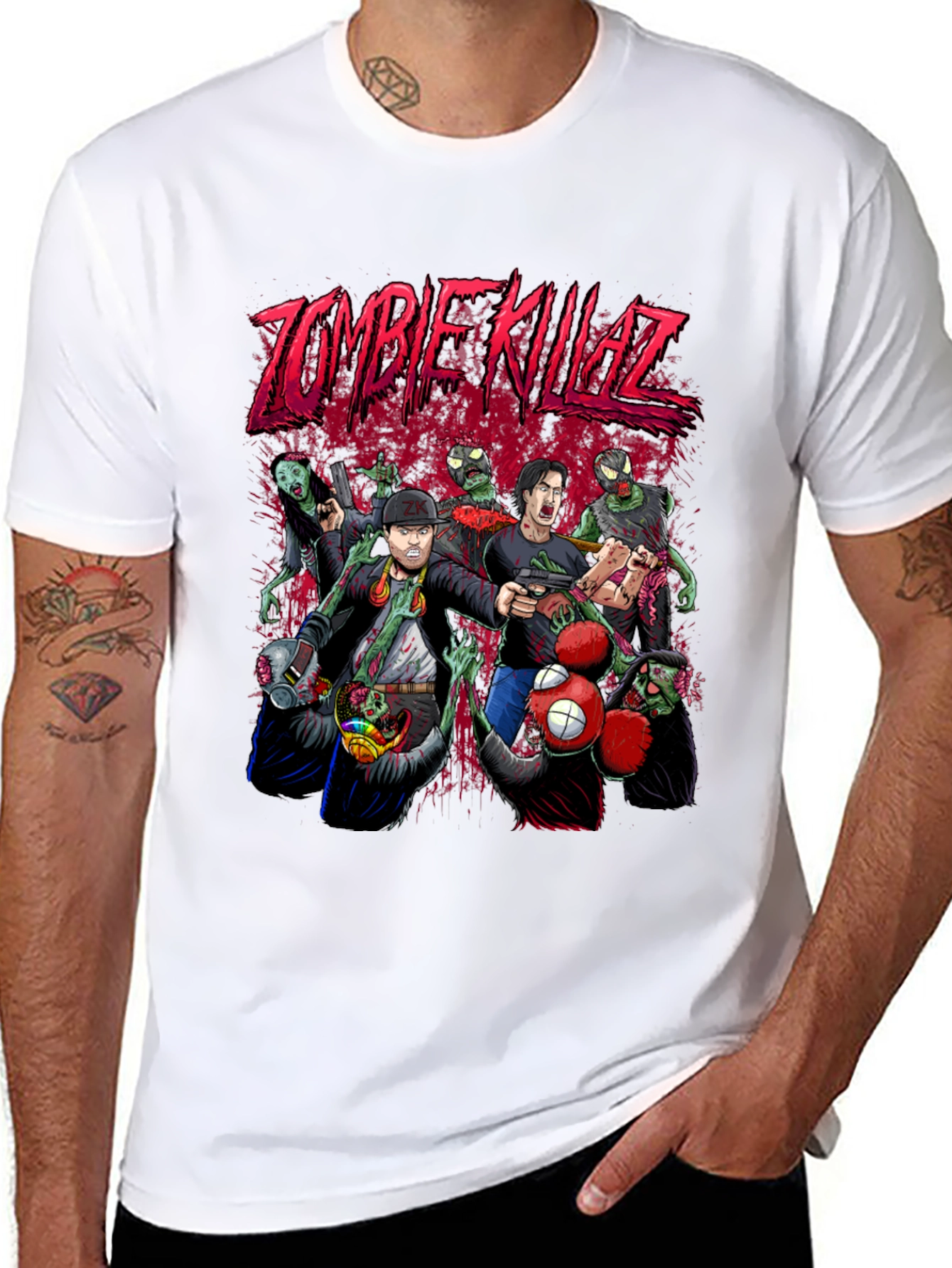 Muestra tu lado más audaz con esta camiseta negra de Zombie Killaz. El diseño presenta una ilustración vibrante y detallada de personajes luchando contra zombies, ideal para fanáticos del horror y la acción. Fabricada con un tejido suave y cómodo, esta camiseta es perfecta para usar a diario o para eventos temáticos. Su corte clásico asegura un ajuste favorecedor para todos. Expresa tu estilo único con esta prenda llamativa y de alta calidad. Perfecta para regalar a amantes de los zombies y videojuegos.