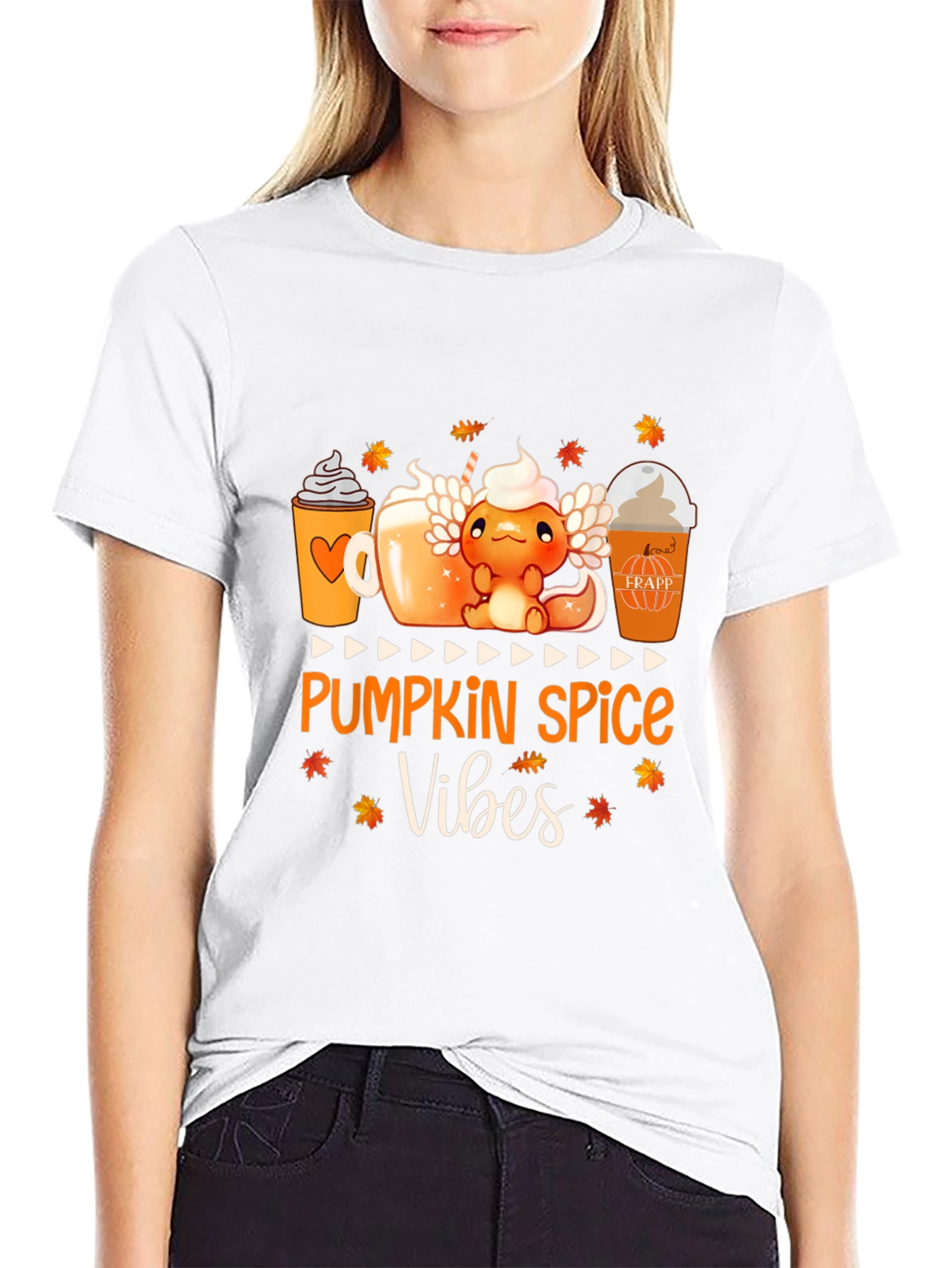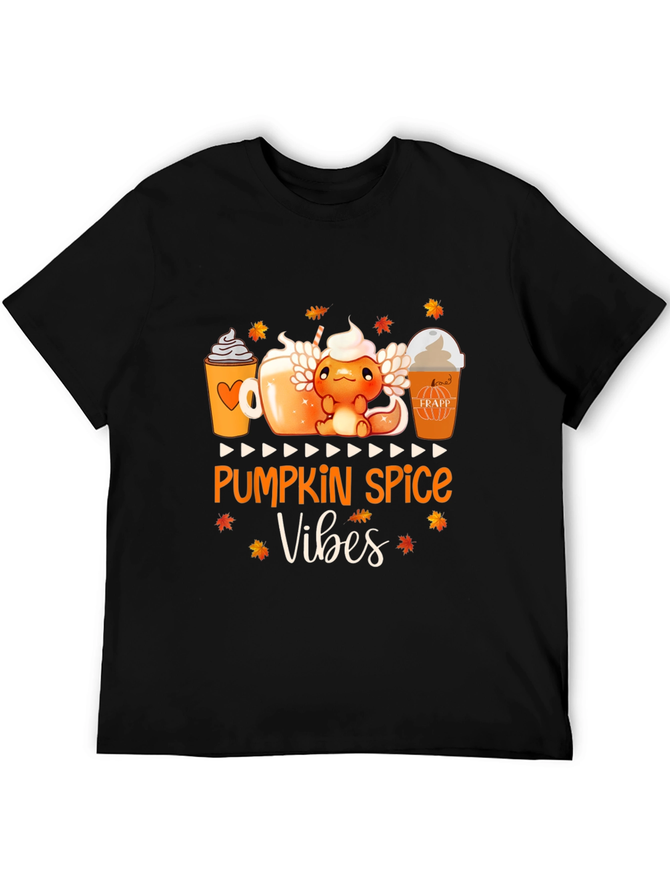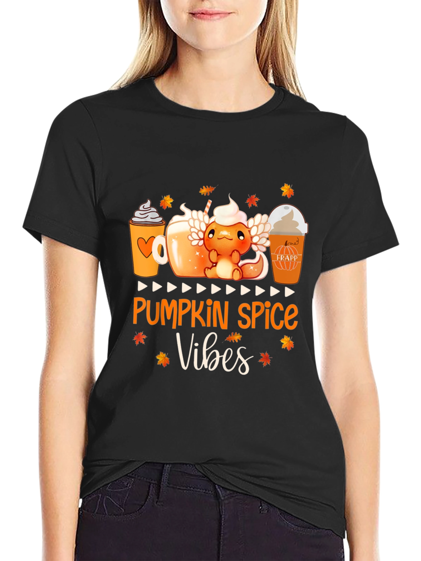 Celebra la temporada de otoño con esta adorable camiseta negra. Presenta un diseño divertido con tazas de café "Pumpkin Spice", un ajolote y hojas de otoño. Perfecta para los amantes del café y la estética otoñal, esta camiseta es ideal para usar en reuniones casuales, paseos por el parque o simplemente para relajarse en casa con estilo. El diseño vibrante y festivo seguramente alegrará cualquier día de otoño. Con un corte cómodo y favorecedor, esta camiseta se convertirá rápidamente en un básico de tu guardarropa otoñal. ¡Deja que tu amor por el "Pumpkin Spice" brille con esta prenda única y encantadora!