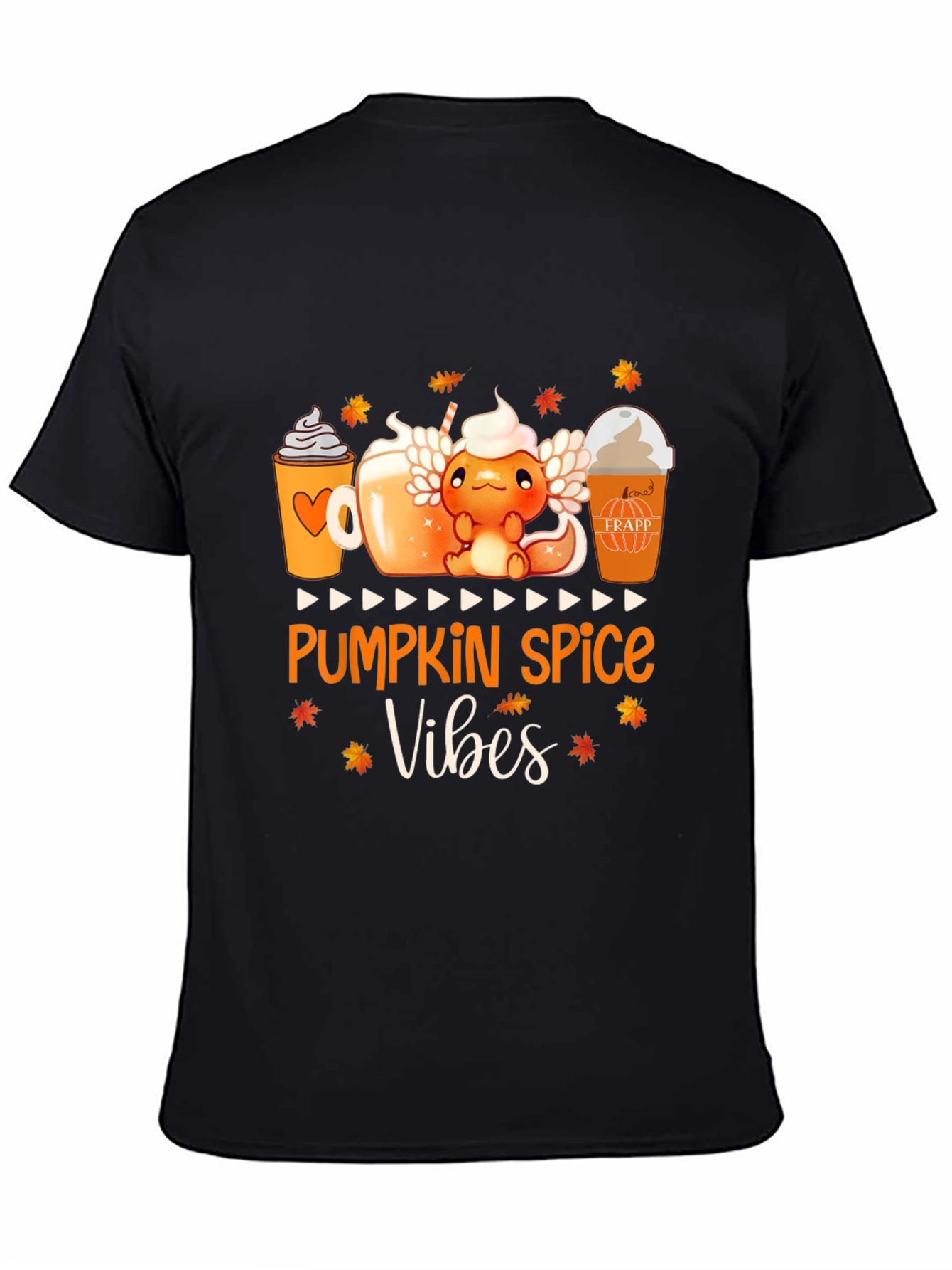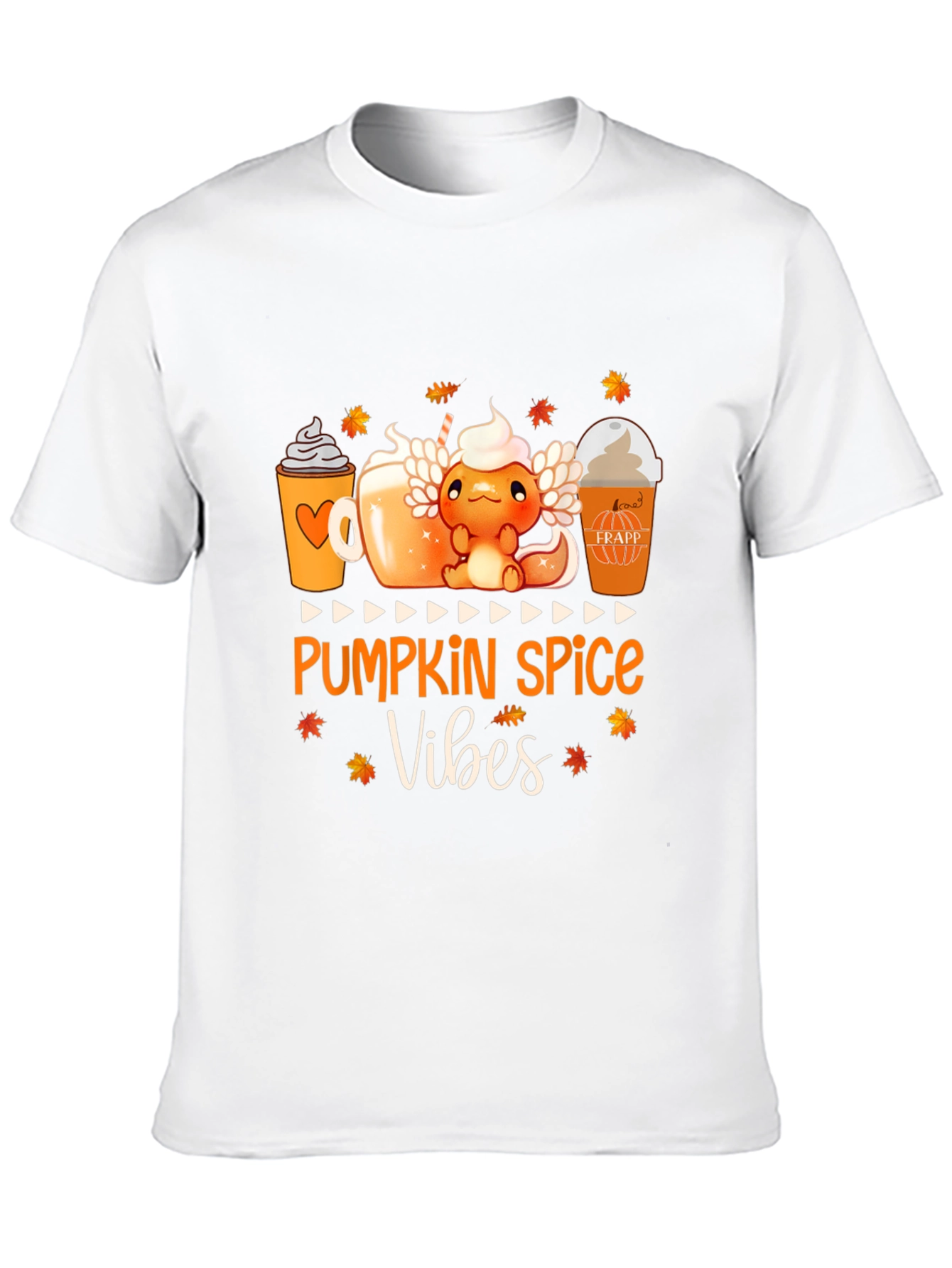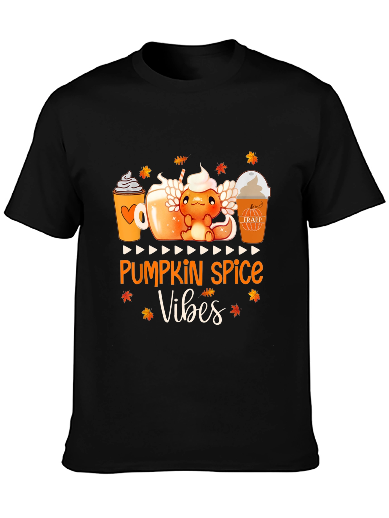 Celebra la temporada de otoño con esta adorable camiseta negra. Presenta un diseño divertido con tazas de café "Pumpkin Spice", un ajolote y hojas de otoño. Perfecta para los amantes del café y la estética otoñal, esta camiseta es ideal para usar en reuniones casuales, paseos por el parque o simplemente para relajarse en casa con estilo. El diseño vibrante y festivo seguramente alegrará cualquier día de otoño. Con un corte cómodo y favorecedor, esta camiseta se convertirá rápidamente en un básico de tu guardarropa otoñal. ¡Deja que tu amor por el "Pumpkin Spice" brille con esta prenda única y encantadora!
