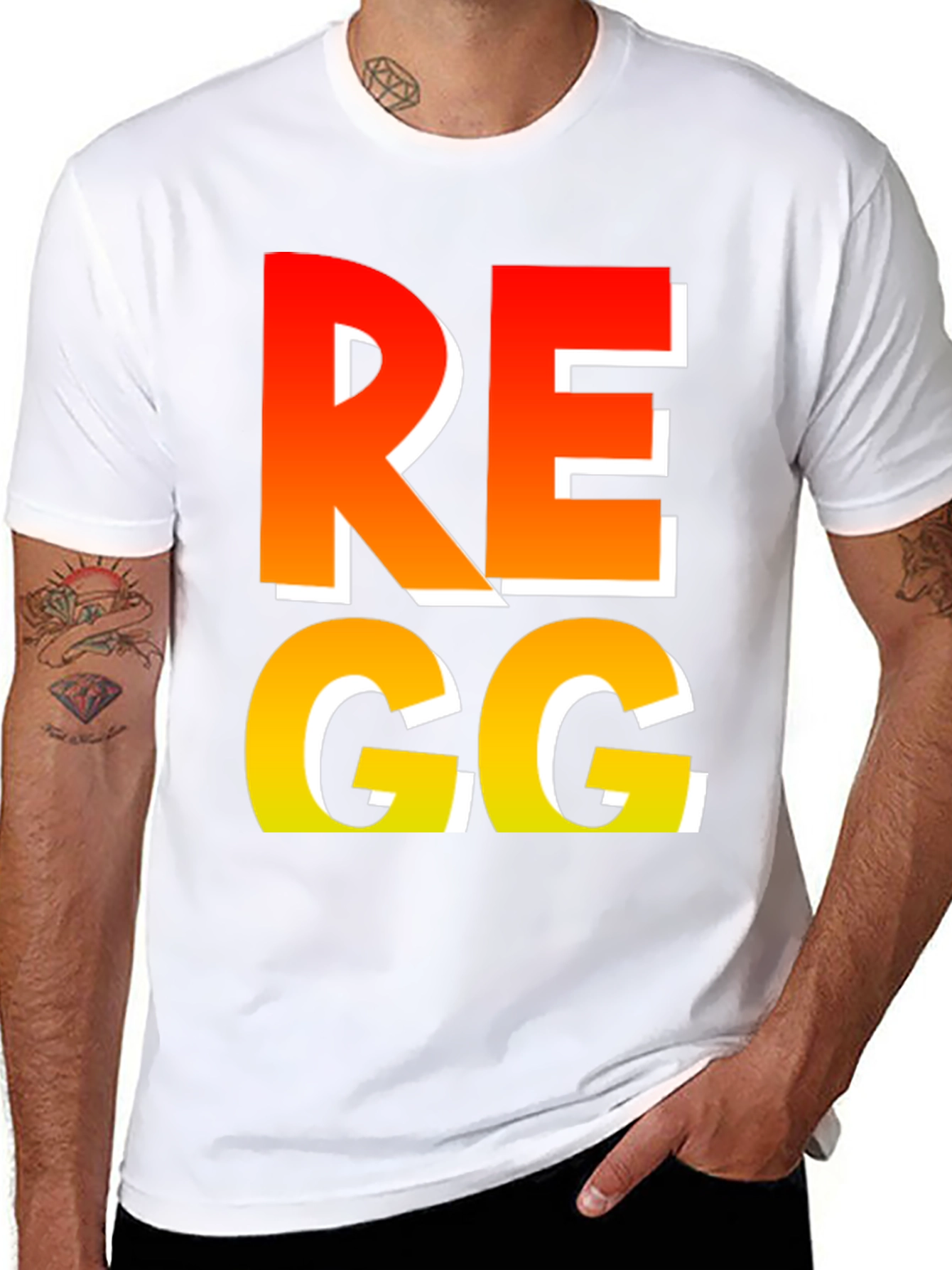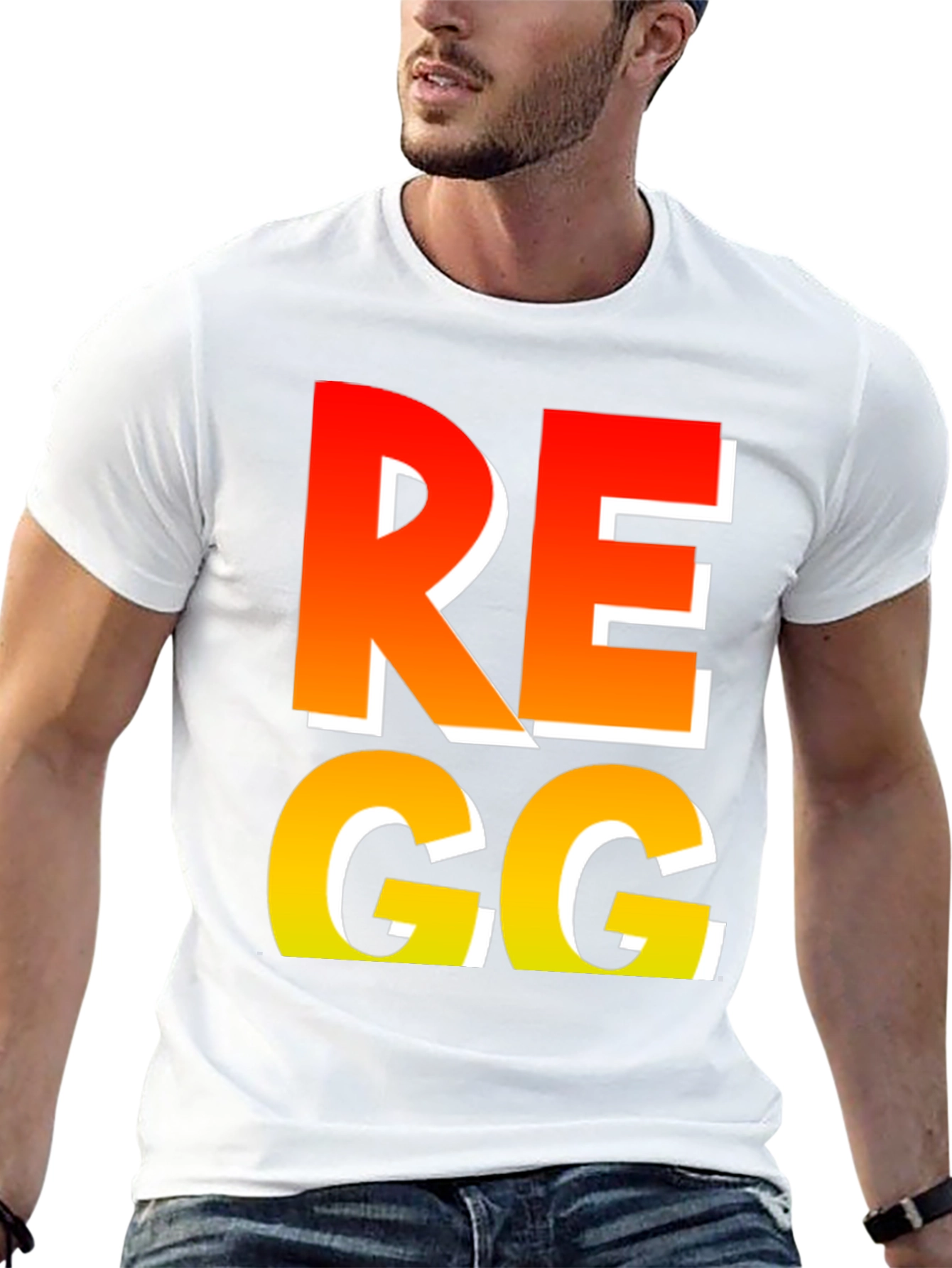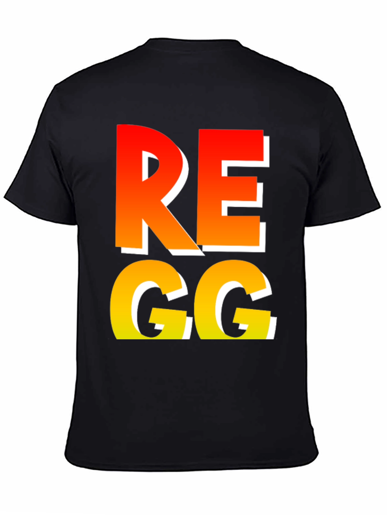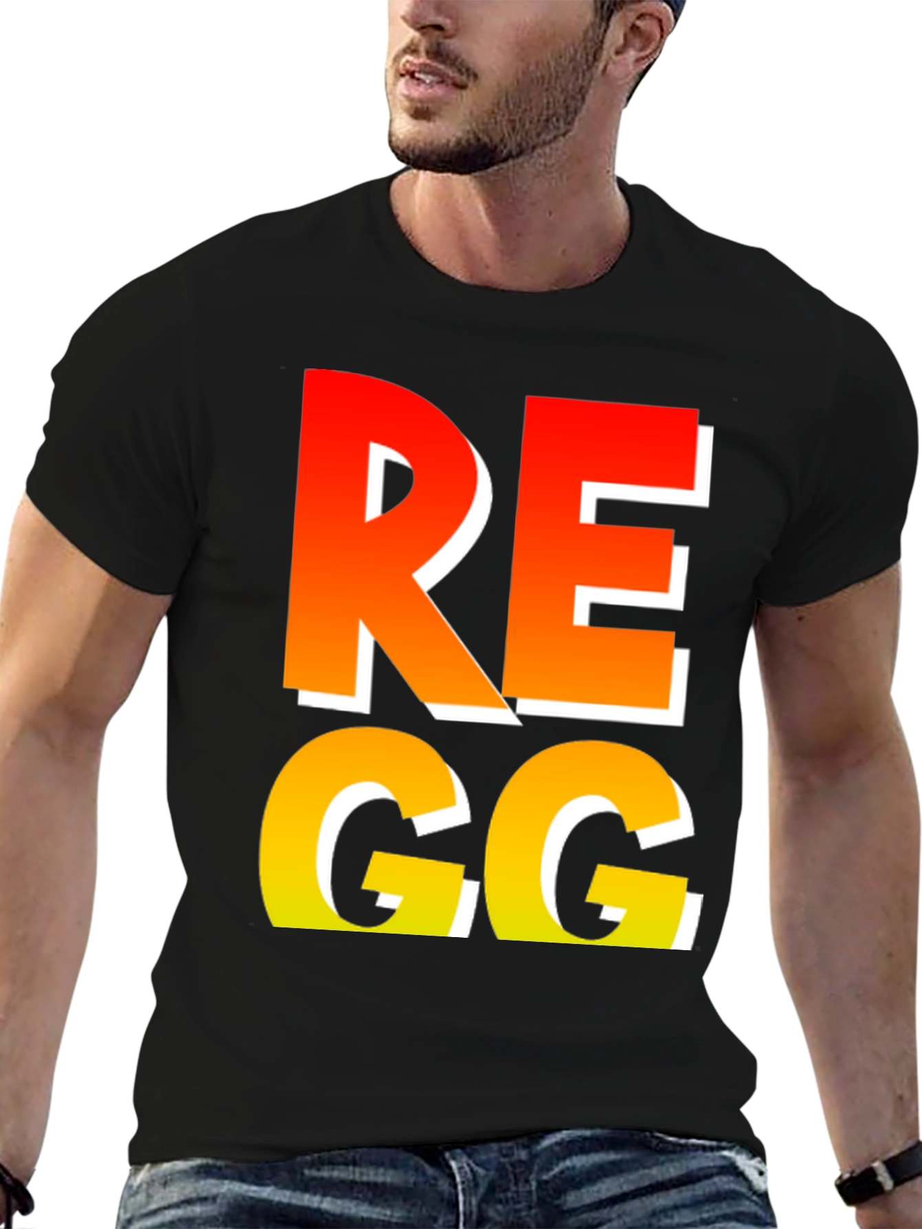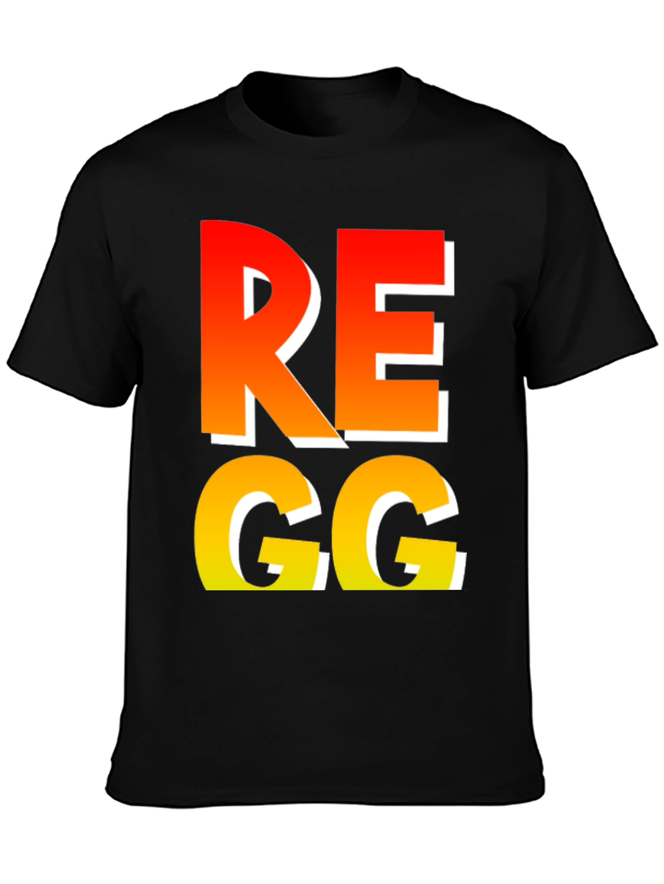 Esta camiseta negra presenta un llamativo diseño "REGG" con un degradado de colores que va del naranja al amarillo. La impresión destaca en la parte frontal de la camiseta, creando un efecto visual moderno y atractivo. Su estilo casual la hace perfecta para el uso diario, ya sea para salir con amigos o para relajarse en casa. El material parece ser suave y cómodo, ideal para llevar durante todo el día. Combina esta camiseta con jeans o pantalones cortos para un look relajado y con estilo. Añade un toque de color y originalidad a tu vestuario con esta prenda única.
