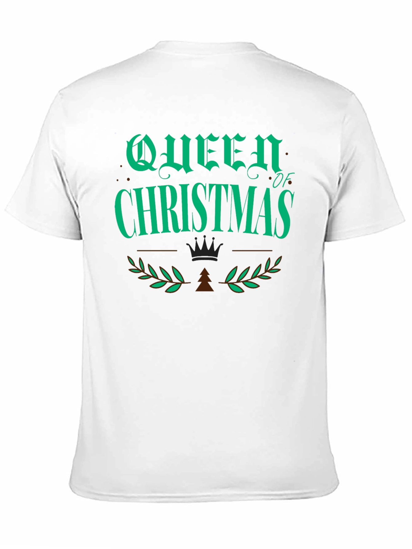 Celebra la temporada navideña con esta elegante camiseta negra "Reina de Navidad". Con un diseño festivo, esta camiseta presenta letras en verde esmeralda con acentos marrones, adornadas con motivos de hojas y una sutil corona. Ideal para fiestas navideñas, reuniones familiares o simplemente para mostrar tu espíritu navideño con estilo. Hecha de un material suave y cómodo, esta camiseta es perfecta para llevarla todo el día. ¡Haz que esta Navidad sea aún más especial con esta prenda única y festiva!