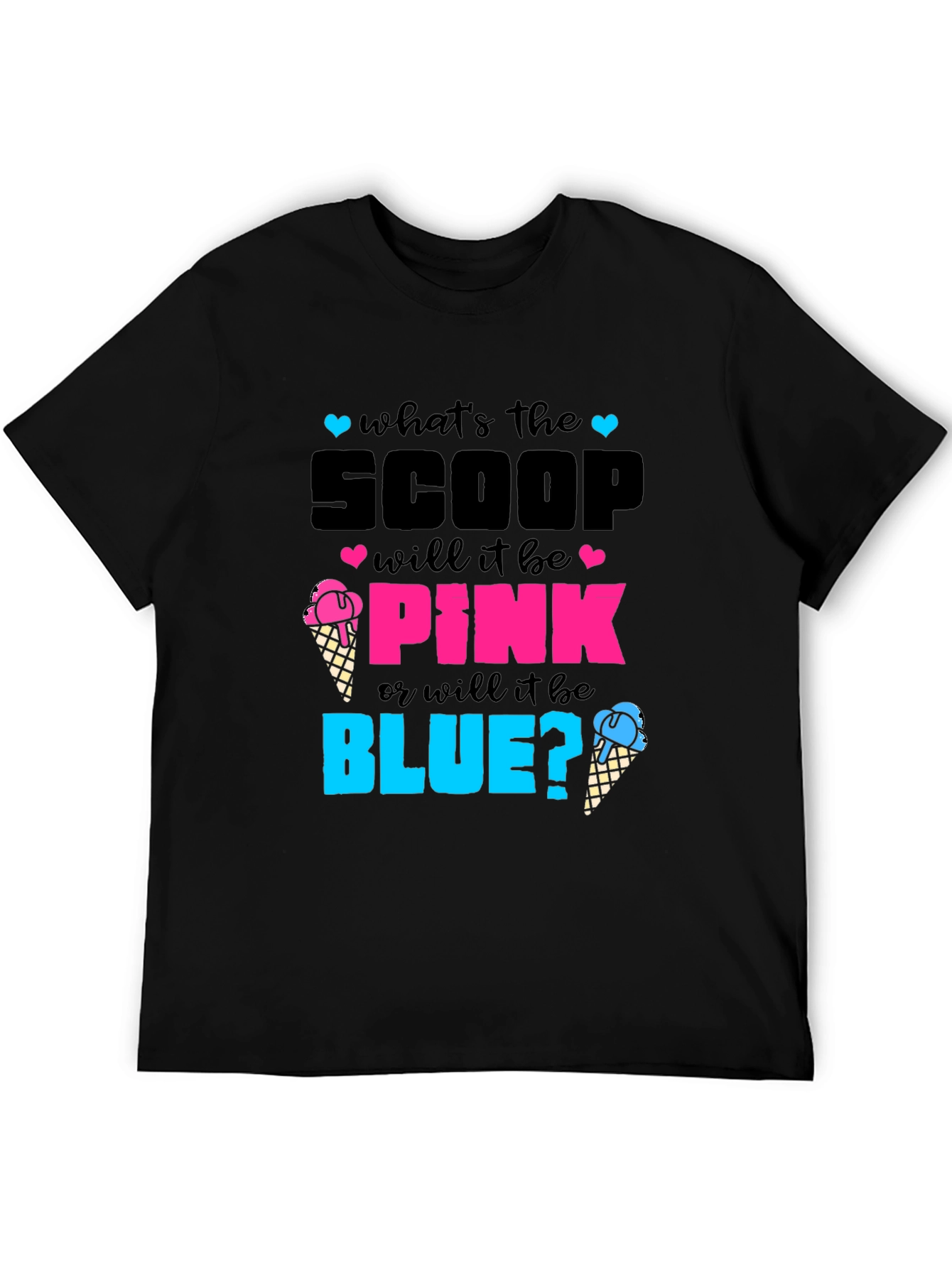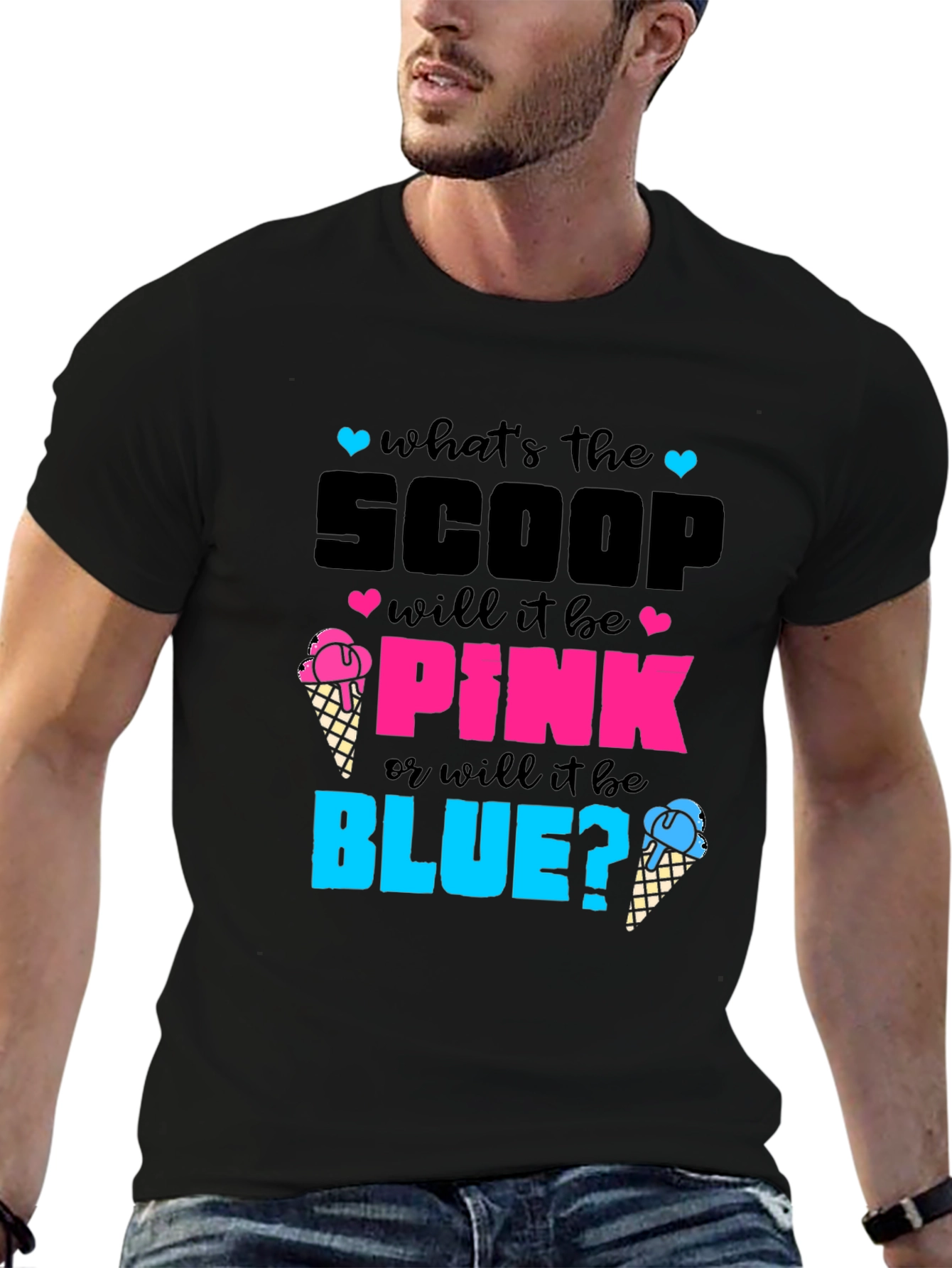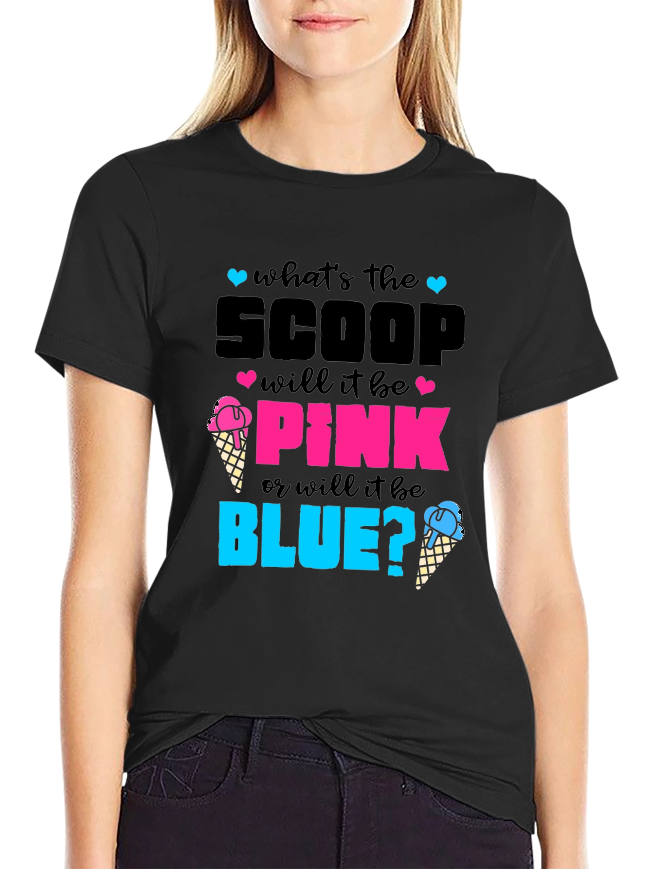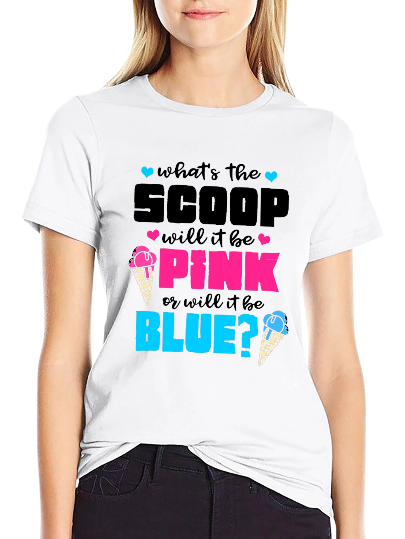 Celebra la llegada de tu bebé con esta divertida camiseta de revelación de género. Fabricada en algodón suave y cómodo, esta camiseta negra presenta un diseño llamativo con la frase "¿Cuál es la noticia? ¿Será rosa o azul?" en colores brillantes. Con imágenes de helados rosa y azul, es perfecta para la fiesta de revelación, para anunciar el embarazo o simplemente para expresar tu entusiasmo. Un regalo original y memorable para futuros papás y mamás. ¡Comparte la alegría y la emoción con esta camiseta única!