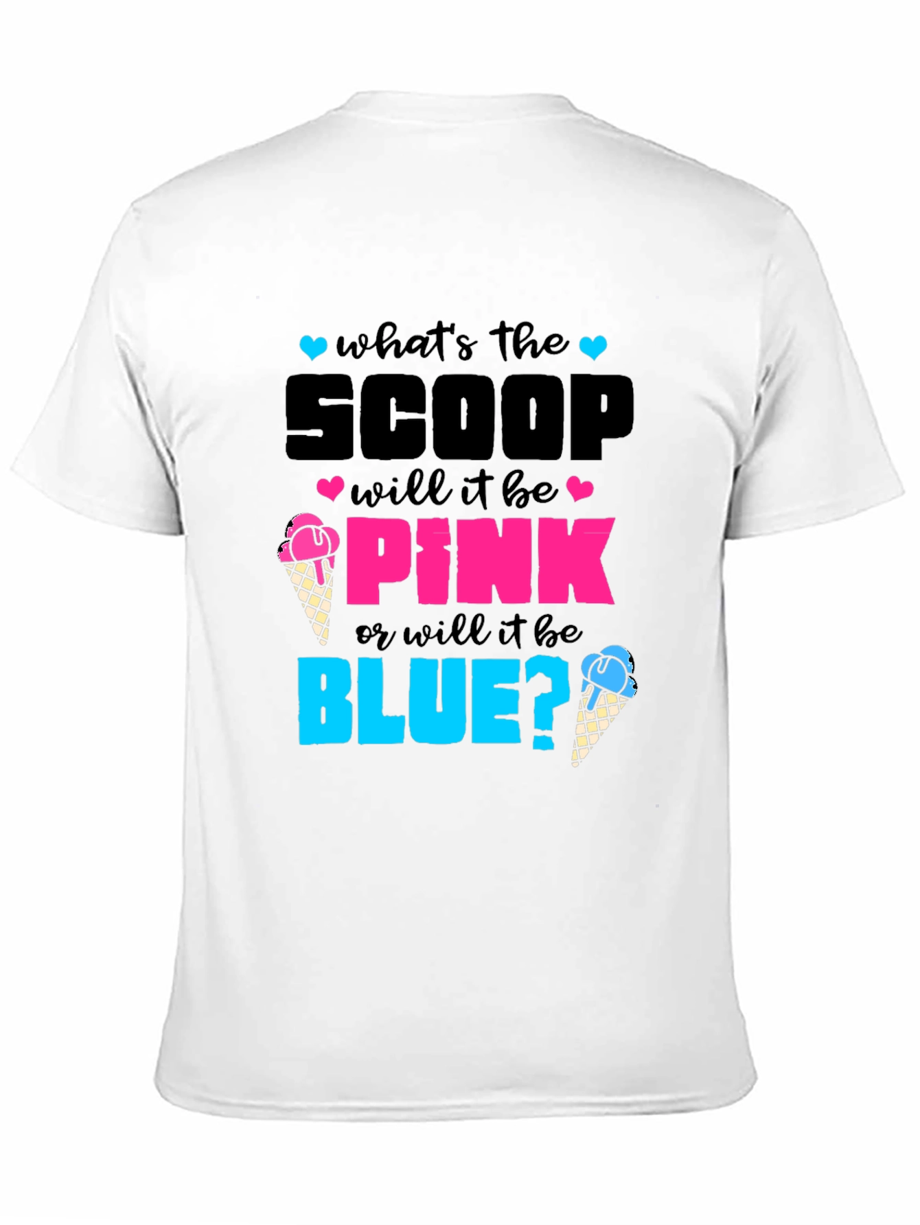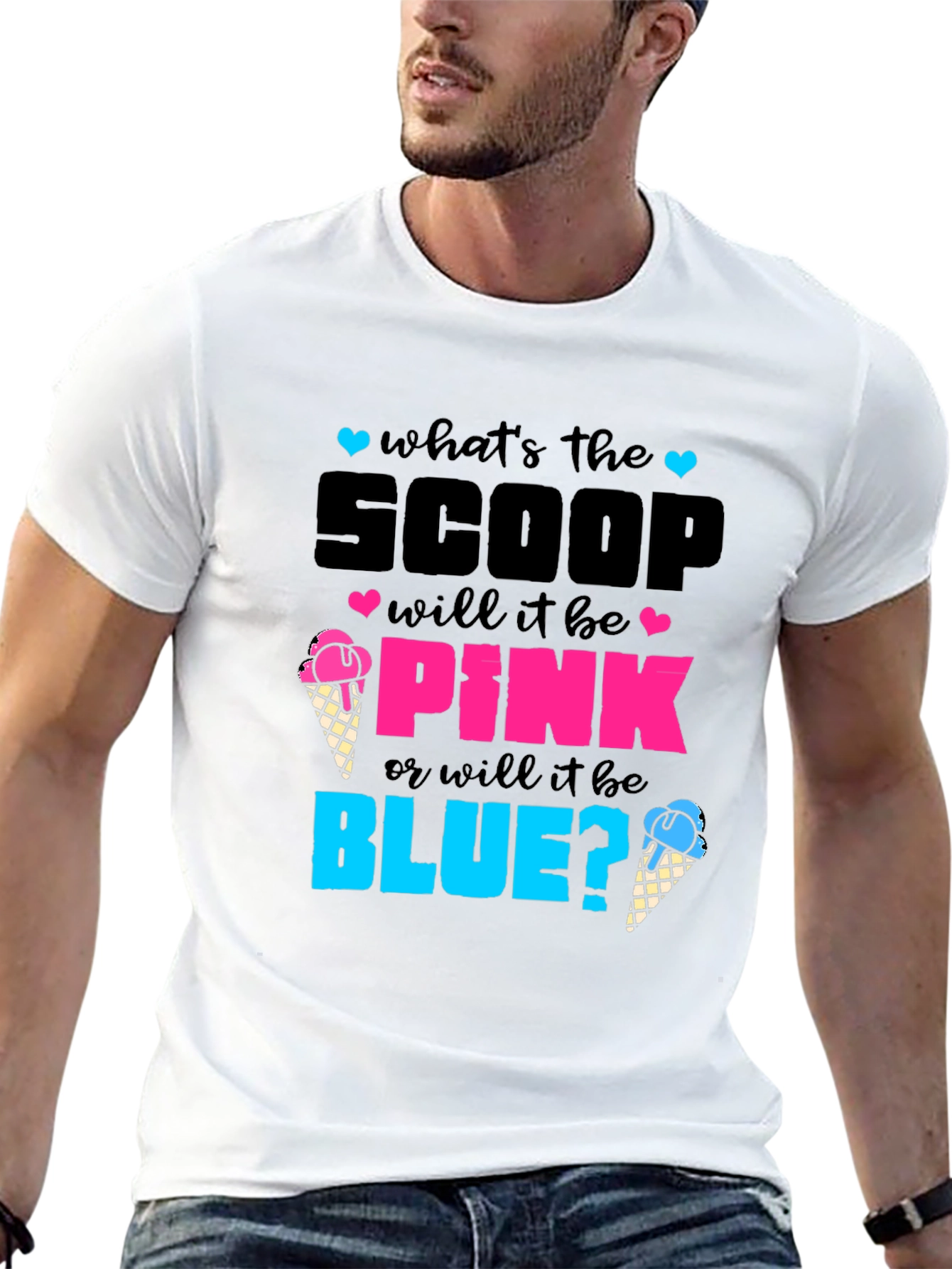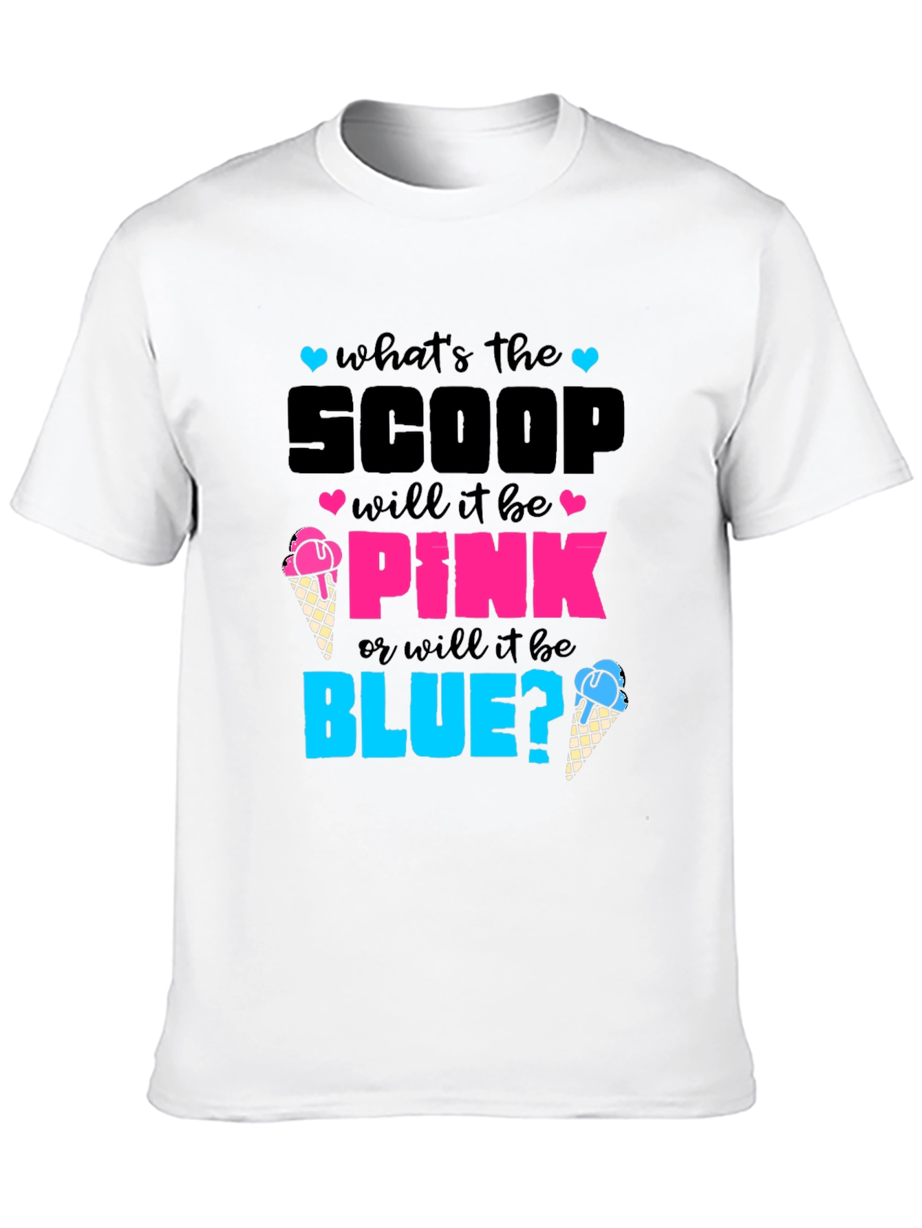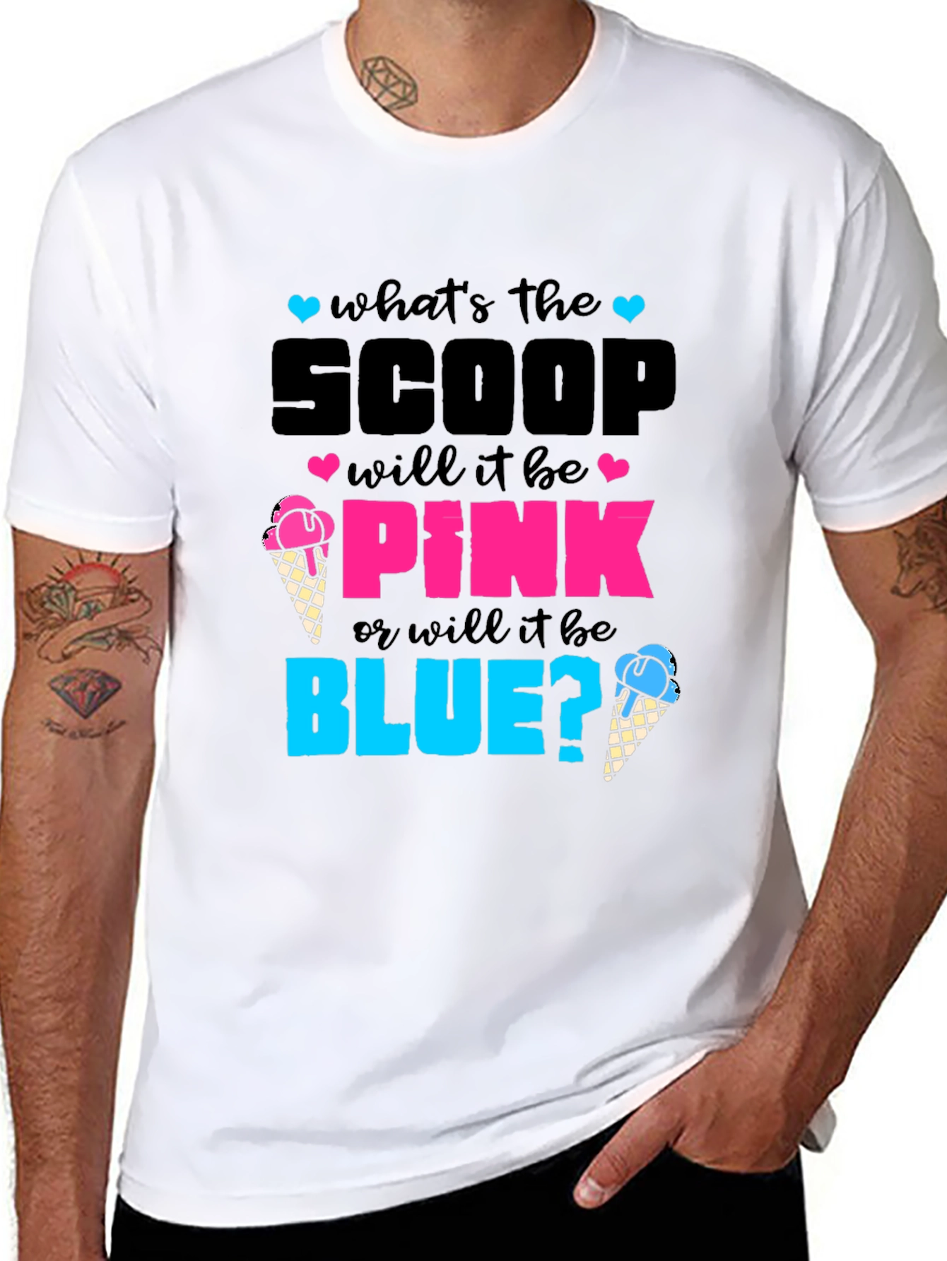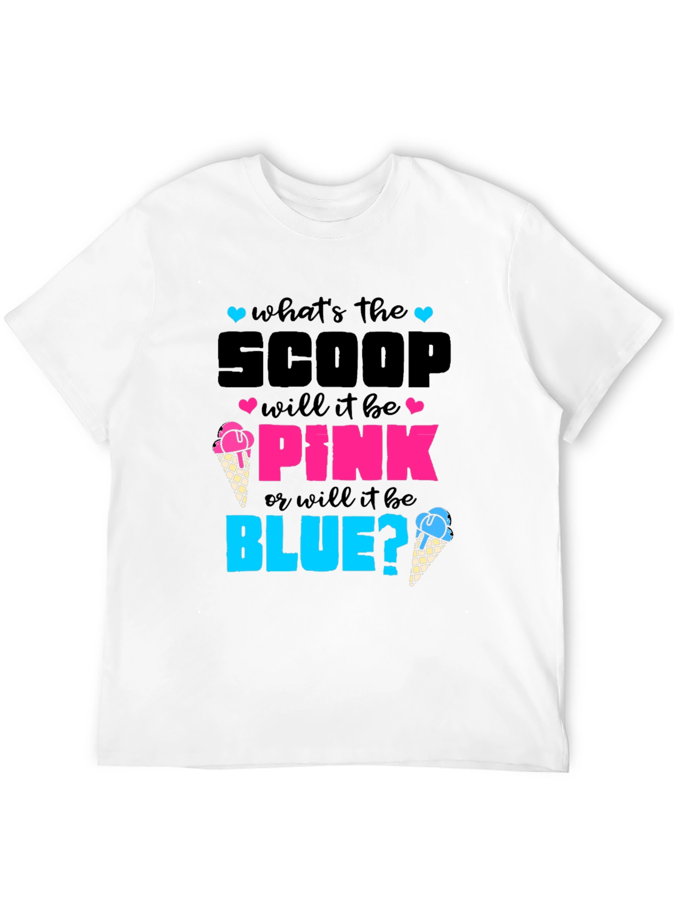 Celebra la llegada de tu bebé con esta divertida camiseta de revelación de género. Fabricada en algodón suave y cómodo, esta camiseta negra presenta un diseño llamativo con la frase "¿Cuál es la noticia? ¿Será rosa o azul?" en colores brillantes. Con imágenes de helados rosa y azul, es perfecta para la fiesta de revelación, para anunciar el embarazo o simplemente para expresar tu entusiasmo. Un regalo original y memorable para futuros papás y mamás. ¡Comparte la alegría y la emoción con esta camiseta única!