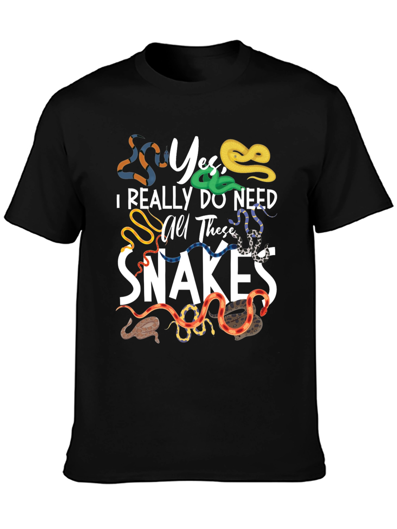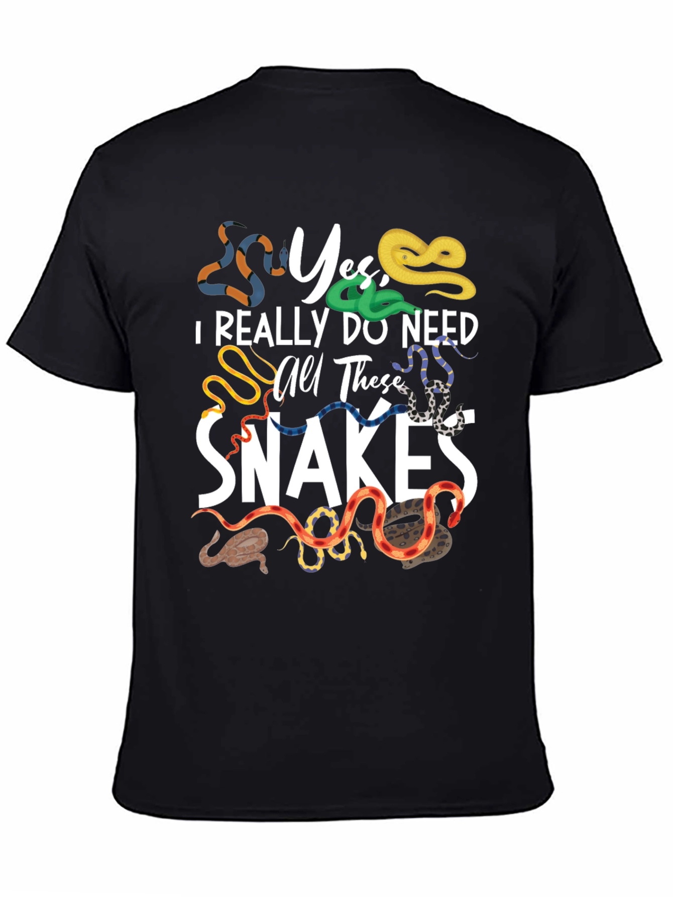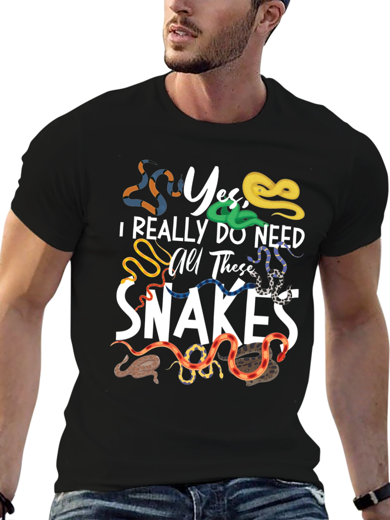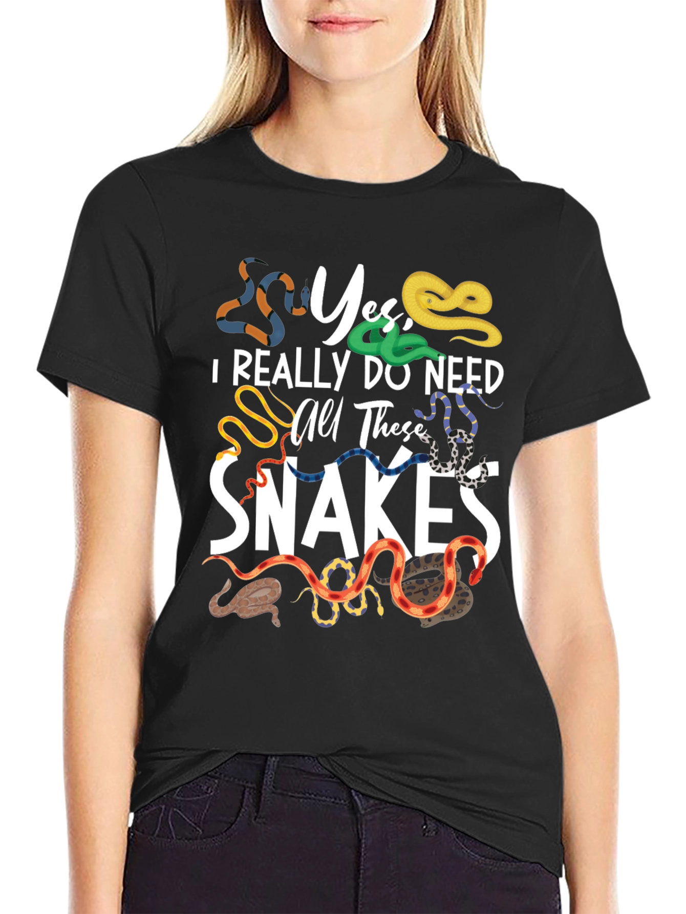 Muestra tu amor por las serpientes con esta camiseta negra. El diseño presenta un divertido texto "Sí, realmente necesito todas estas serpientes" rodeado de coloridas ilustraciones de varias serpientes. Perfecta para los amantes de los reptiles y mascotas exóticas. Ideal para usar en eventos de mascotas, reuniones de amantes de las serpientes o simplemente para expresar tu pasión por estos fascinantes animales. Hecha con materiales suaves y cómodos, esta camiseta es una adición imprescindible para cualquier coleccionista o entusiasta de las serpientes. ¡Luce tu amor por las serpientes con estilo!
