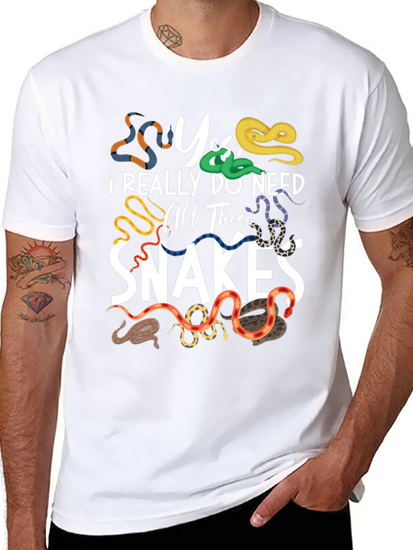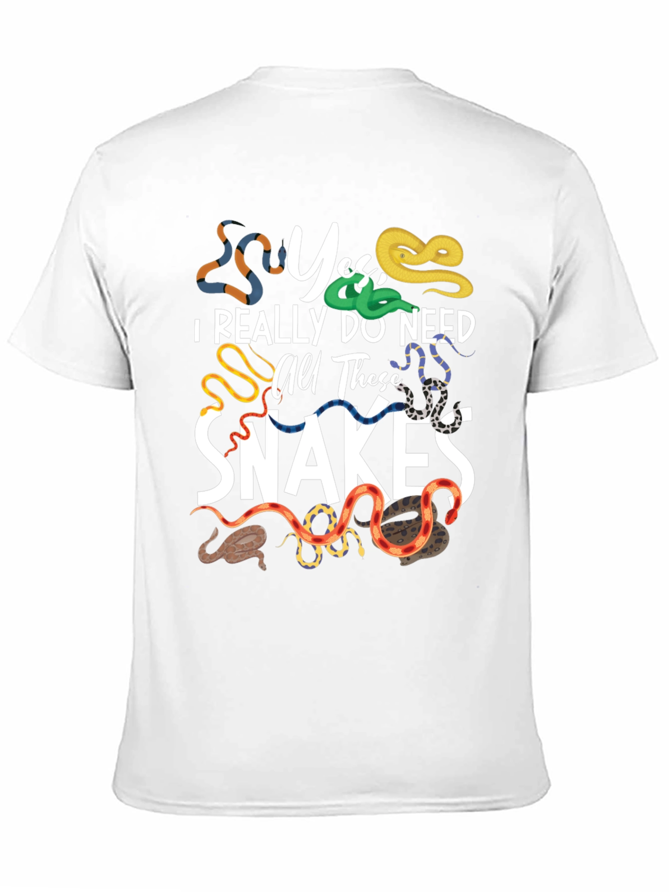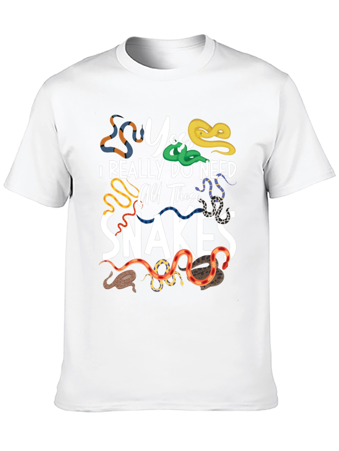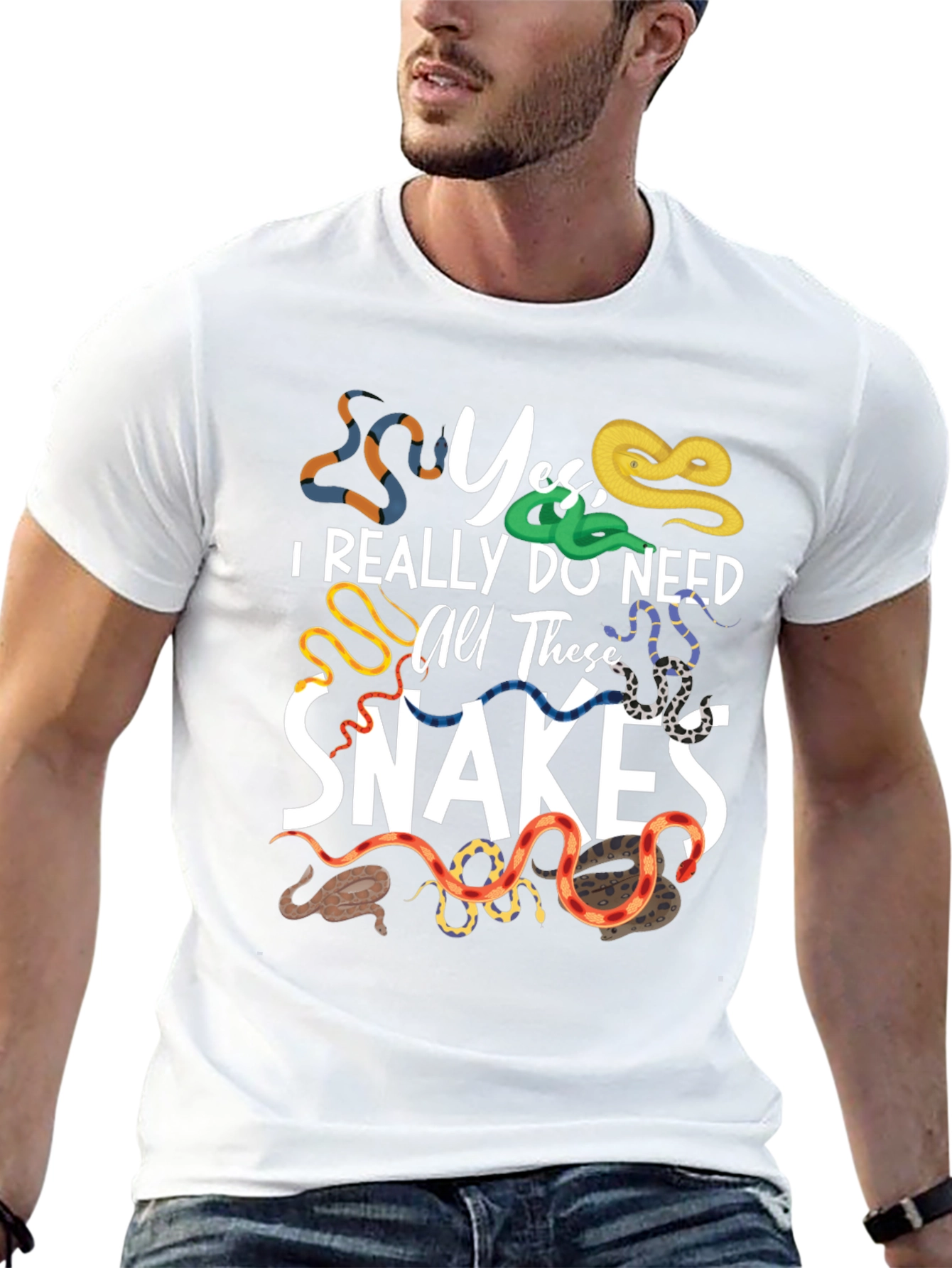 Muestra tu amor por las serpientes con esta camiseta negra. El diseño presenta un divertido texto "Sí, realmente necesito todas estas serpientes" rodeado de coloridas ilustraciones de varias serpientes. Perfecta para los amantes de los reptiles y mascotas exóticas. Ideal para usar en eventos de mascotas, reuniones de amantes de las serpientes o simplemente para expresar tu pasión por estos fascinantes animales. Hecha con materiales suaves y cómodos, esta camiseta es una adición imprescindible para cualquier coleccionista o entusiasta de las serpientes. ¡Luce tu amor por las serpientes con estilo!