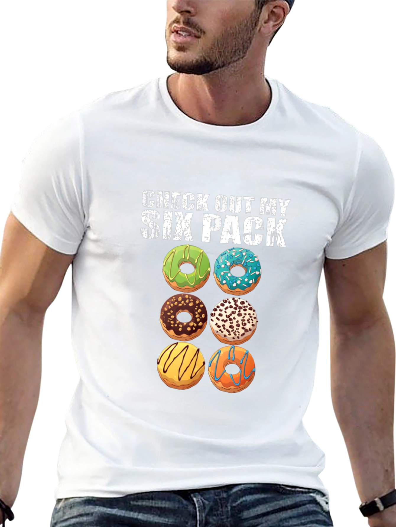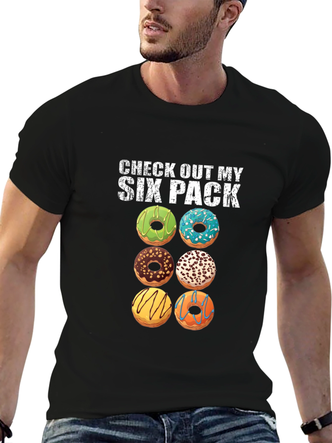 ¡Presume tu 'six pack' con estilo y humor! Esta camiseta negra para hombre presenta un diseño divertido con seis donas glaseadas que simulan un abdomen de 'six pack'. Ideal para los amantes de los dulces y el ejercicio (o la falta de él). Fabricada con un tejido suave y cómodo, esta camiseta de manga corta es perfecta para el uso diario, salidas informales o para animar cualquier reunión. Muestra tu personalidad con esta prenda única y original. ¡Serás el centro de atención con este diseño delicioso!