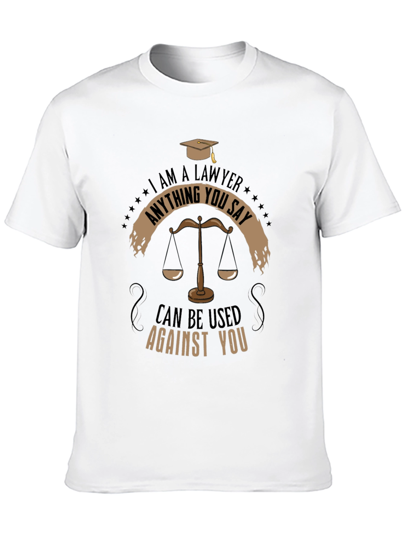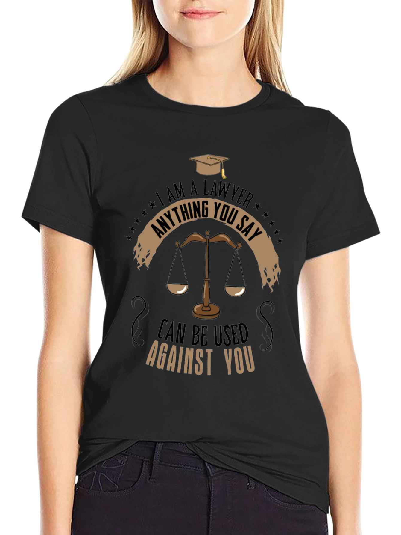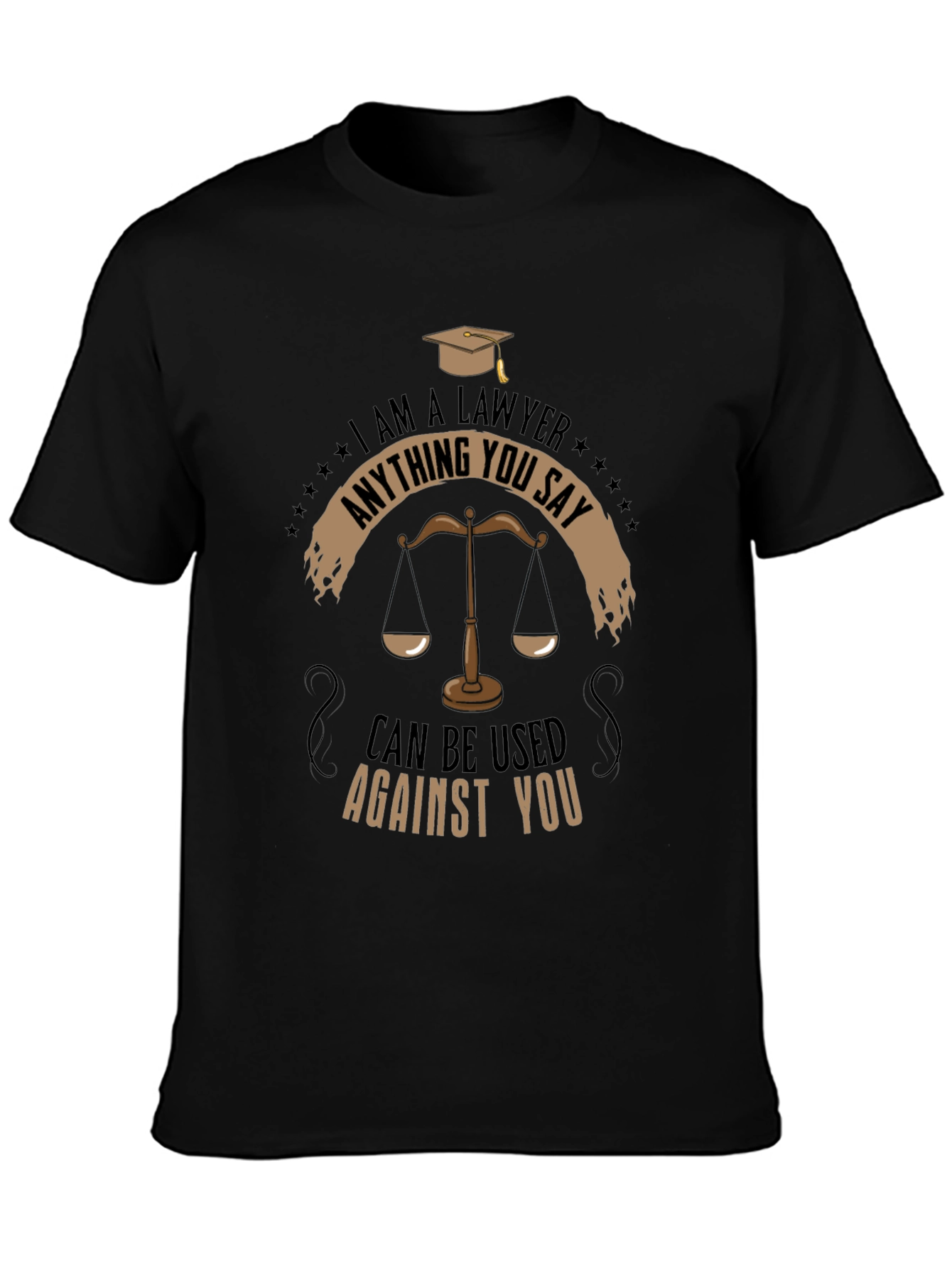 Presume tu profesión con esta camiseta negra de manga corta. El diseño presenta un birrete de graduación y una balanza dorada, símbolos clásicos del ámbito legal. La frase "I am a lawyer, anything you say can be used against you" (Soy abogado, todo lo que digas puede ser usado en tu contra) está impresa en un estilo llamativo. Esta prenda es perfecta para abogados orgullosos, estudiantes de derecho o cualquier persona con un sentido del humor agudo. Ideal para llevar en eventos informales, reuniones con amigos o simplemente para destacar tu personalidad.