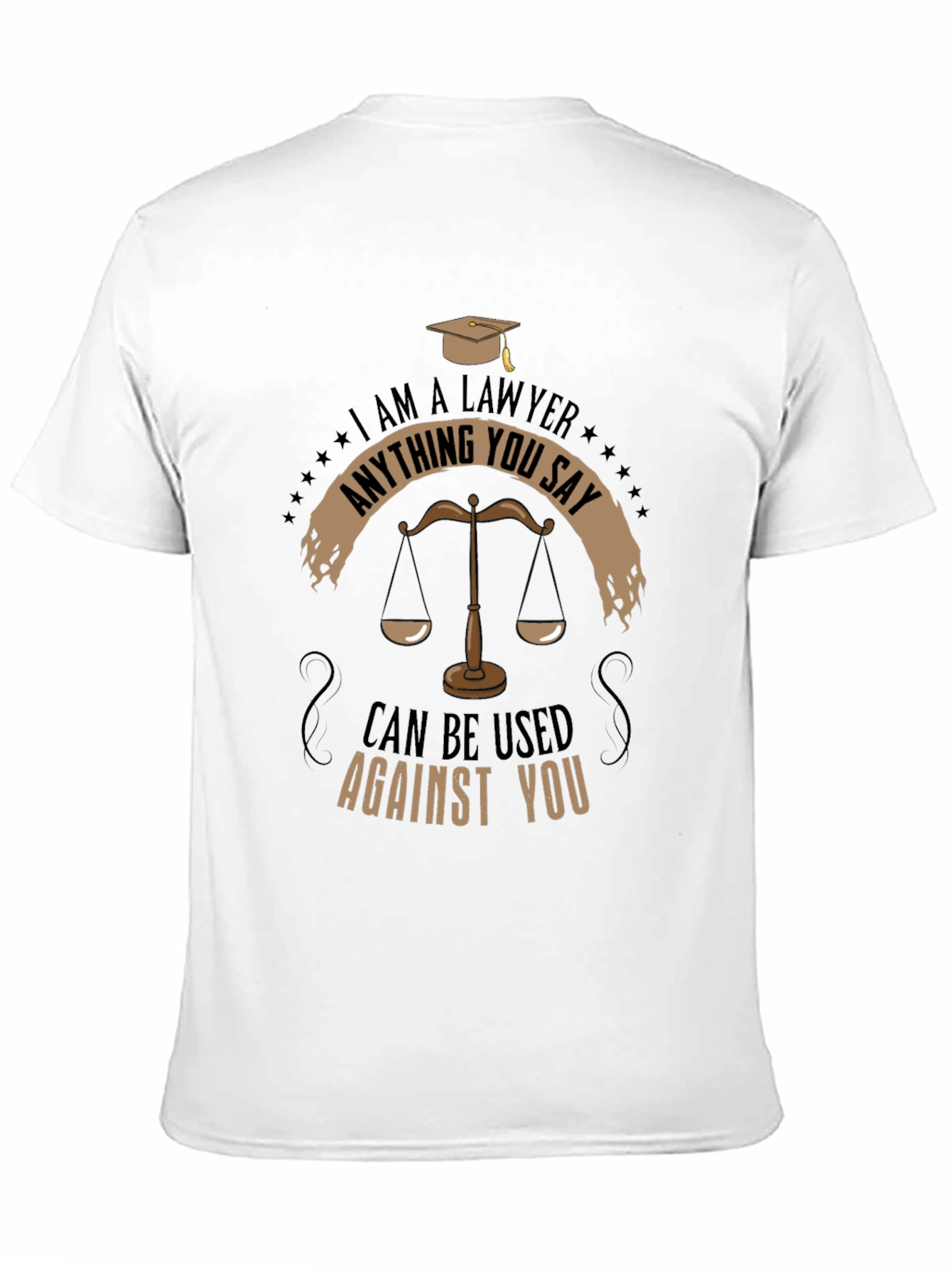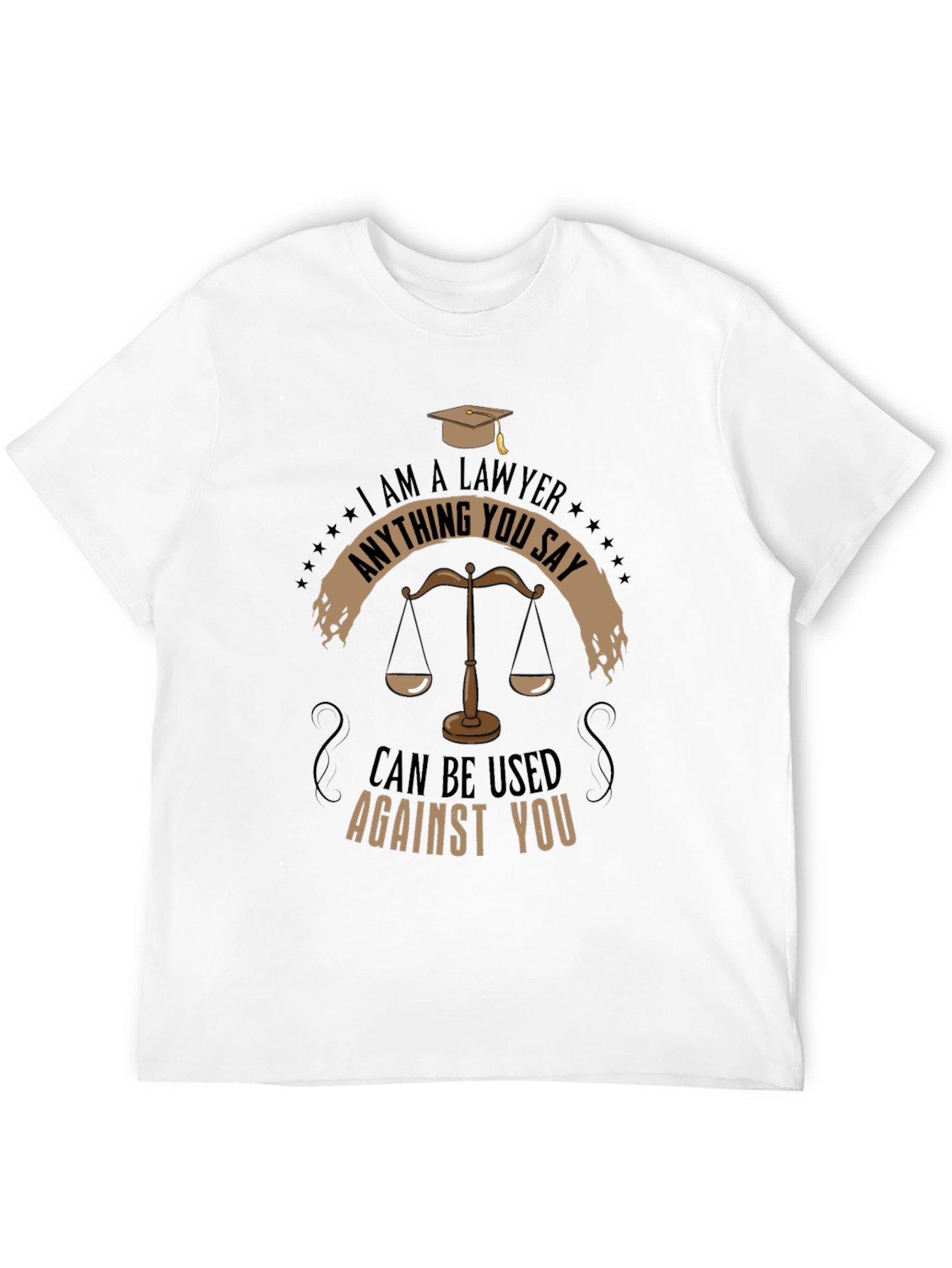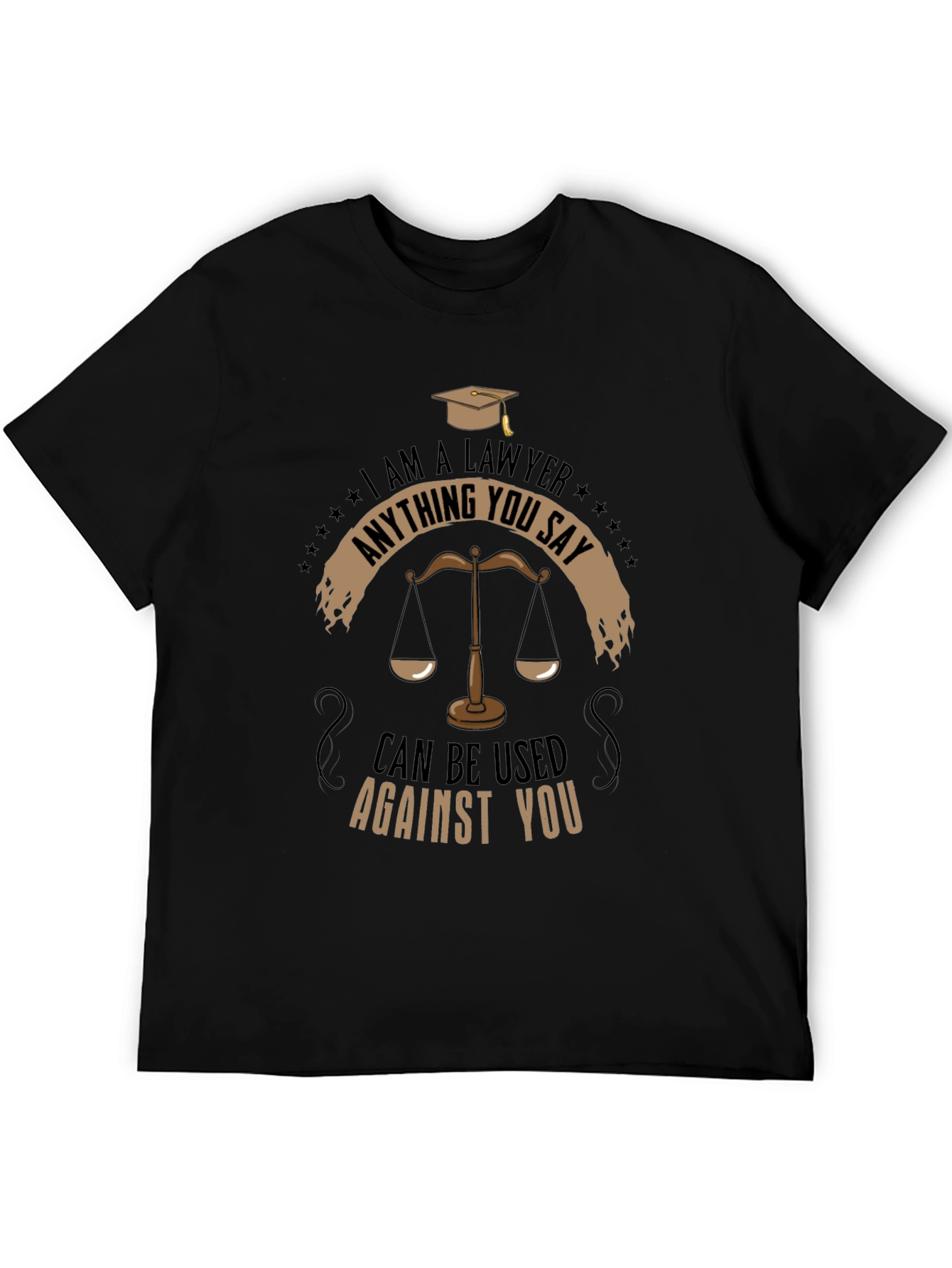 Presume tu profesión con esta camiseta negra de manga corta. El diseño presenta un birrete de graduación y una balanza dorada, símbolos clásicos del ámbito legal. La frase "I am a lawyer, anything you say can be used against you" (Soy abogado, todo lo que digas puede ser usado en tu contra) está impresa en un estilo llamativo. Esta prenda es perfecta para abogados orgullosos, estudiantes de derecho o cualquier persona con un sentido del humor agudo. Ideal para llevar en eventos informales, reuniones con amigos o simplemente para destacar tu personalidad.