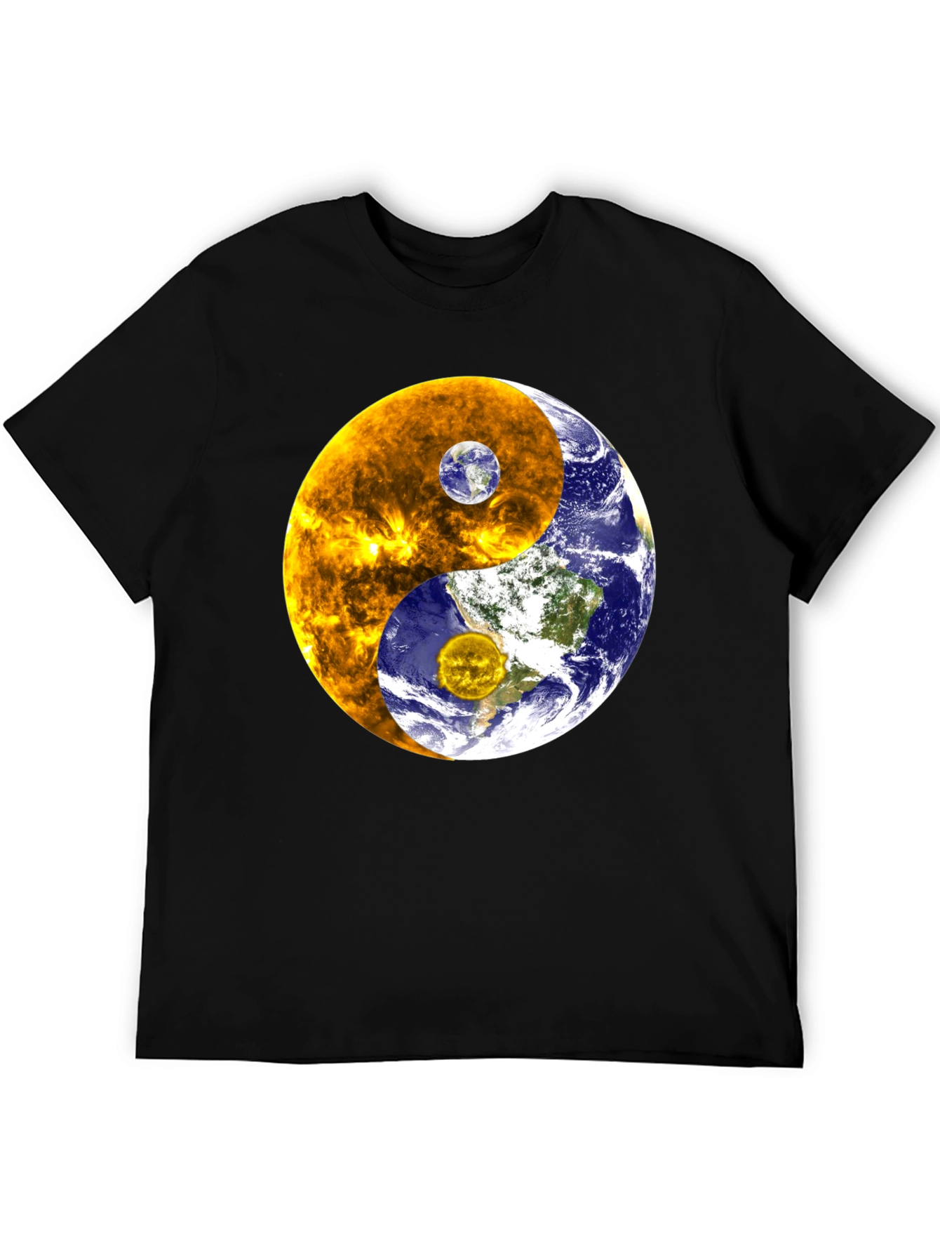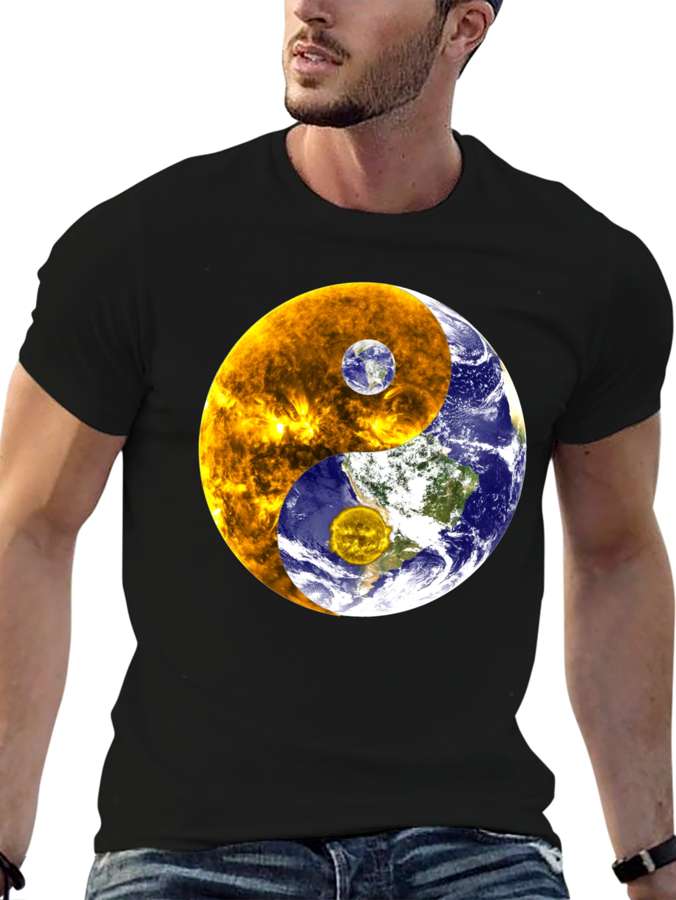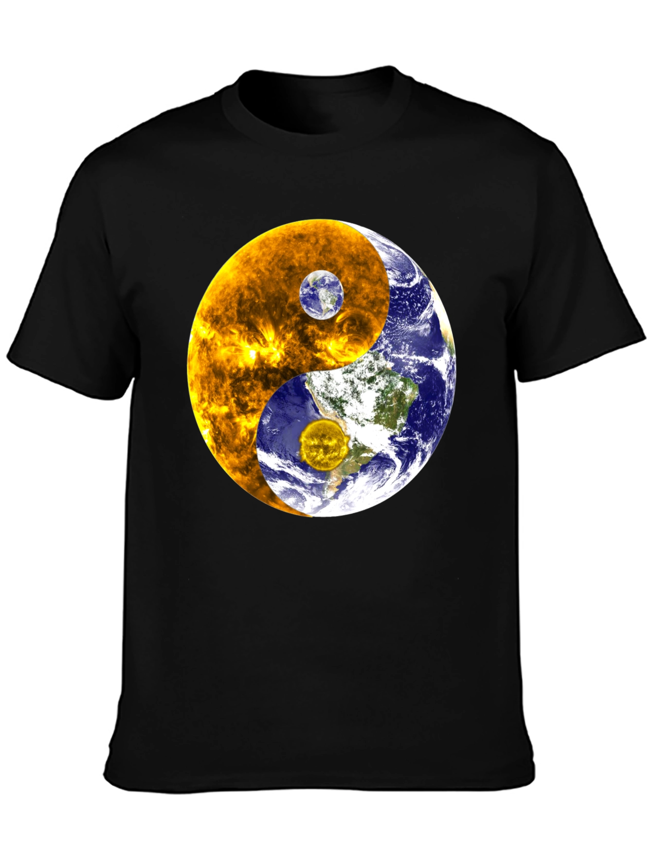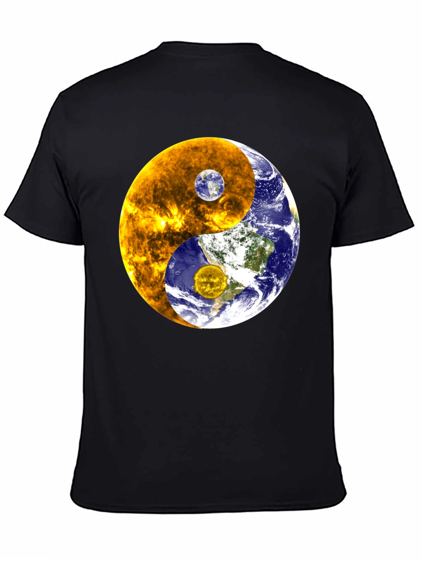 Luce esta original camiseta negra con un diseño Yin Yang único que fusiona el sol ardiente y la tierra exuberante. El diseño simboliza el equilibrio cósmico y la armonía universal. Ideal para aquellos que aprecian la conexión entre la energía solar y la vitalidad terrestre. Perfecta para vestir casual, destacar con un estilo llamativo y expresar tu pasión por el universo. Su tejido suave y cómodo la hace ideal para cualquier ocasión. ¡Adquiere esta pieza única y muestra tu conexión con el cosmos!