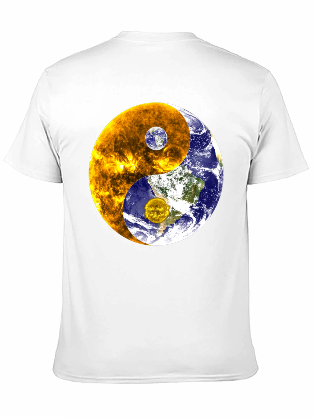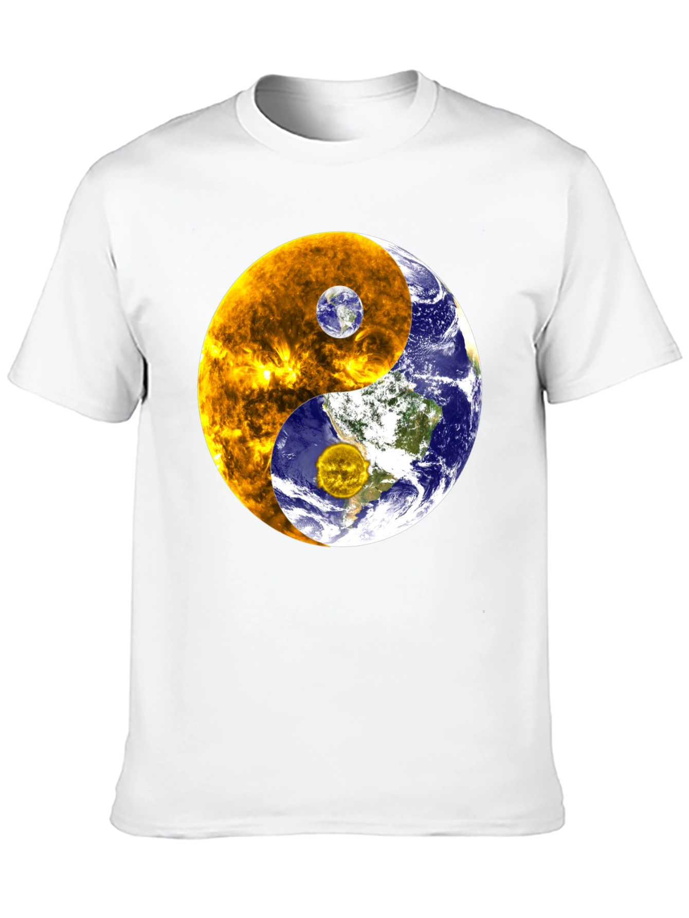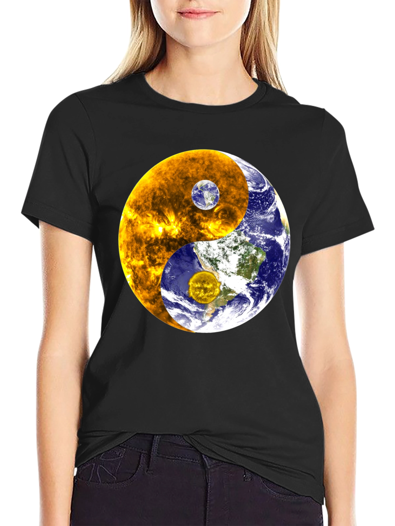 Luce esta original camiseta negra con un diseño Yin Yang único que fusiona el sol ardiente y la tierra exuberante. El diseño simboliza el equilibrio cósmico y la armonía universal. Ideal para aquellos que aprecian la conexión entre la energía solar y la vitalidad terrestre. Perfecta para vestir casual, destacar con un estilo llamativo y expresar tu pasión por el universo. Su tejido suave y cómodo la hace ideal para cualquier ocasión. ¡Adquiere esta pieza única y muestra tu conexión con el cosmos!