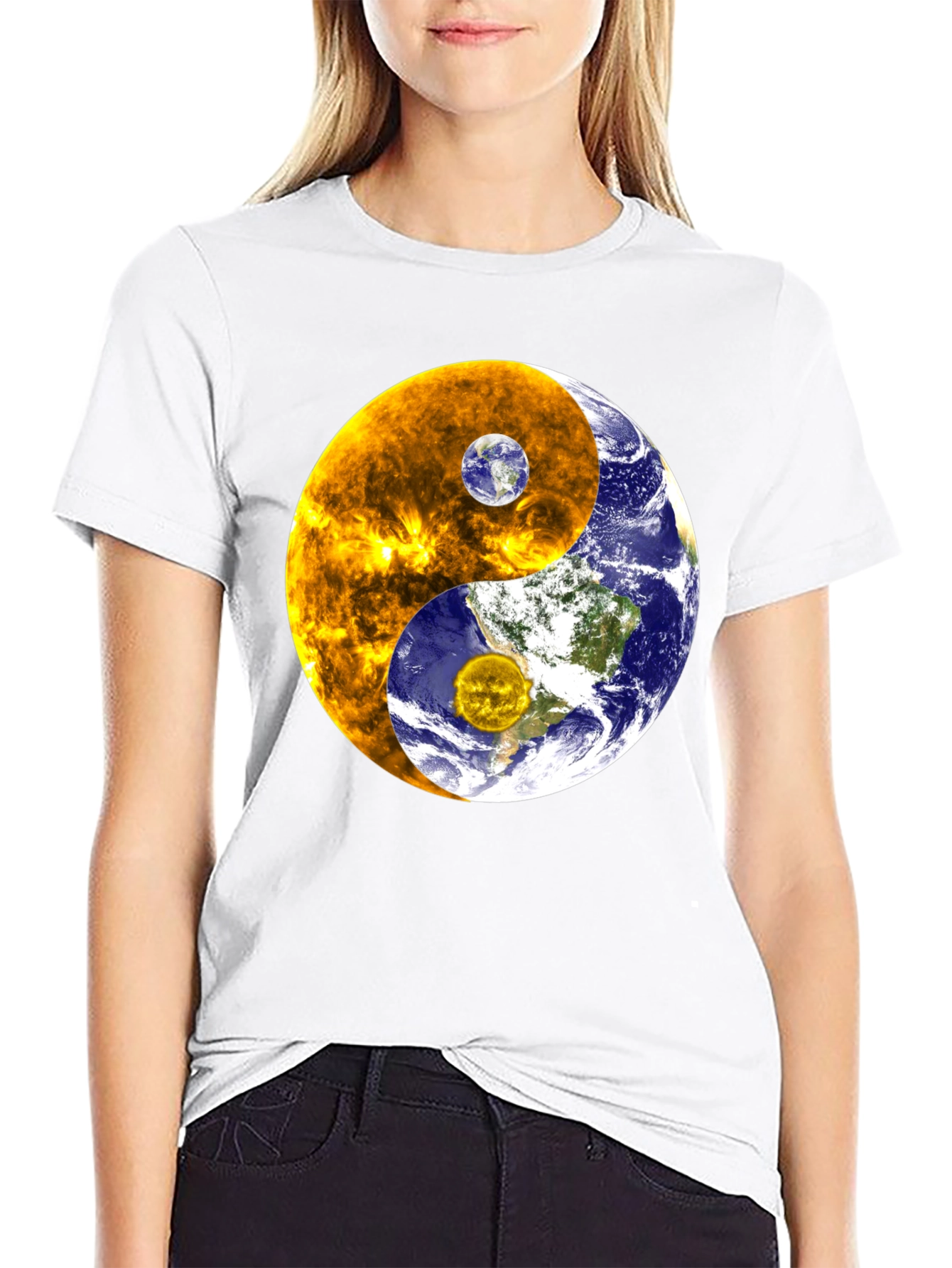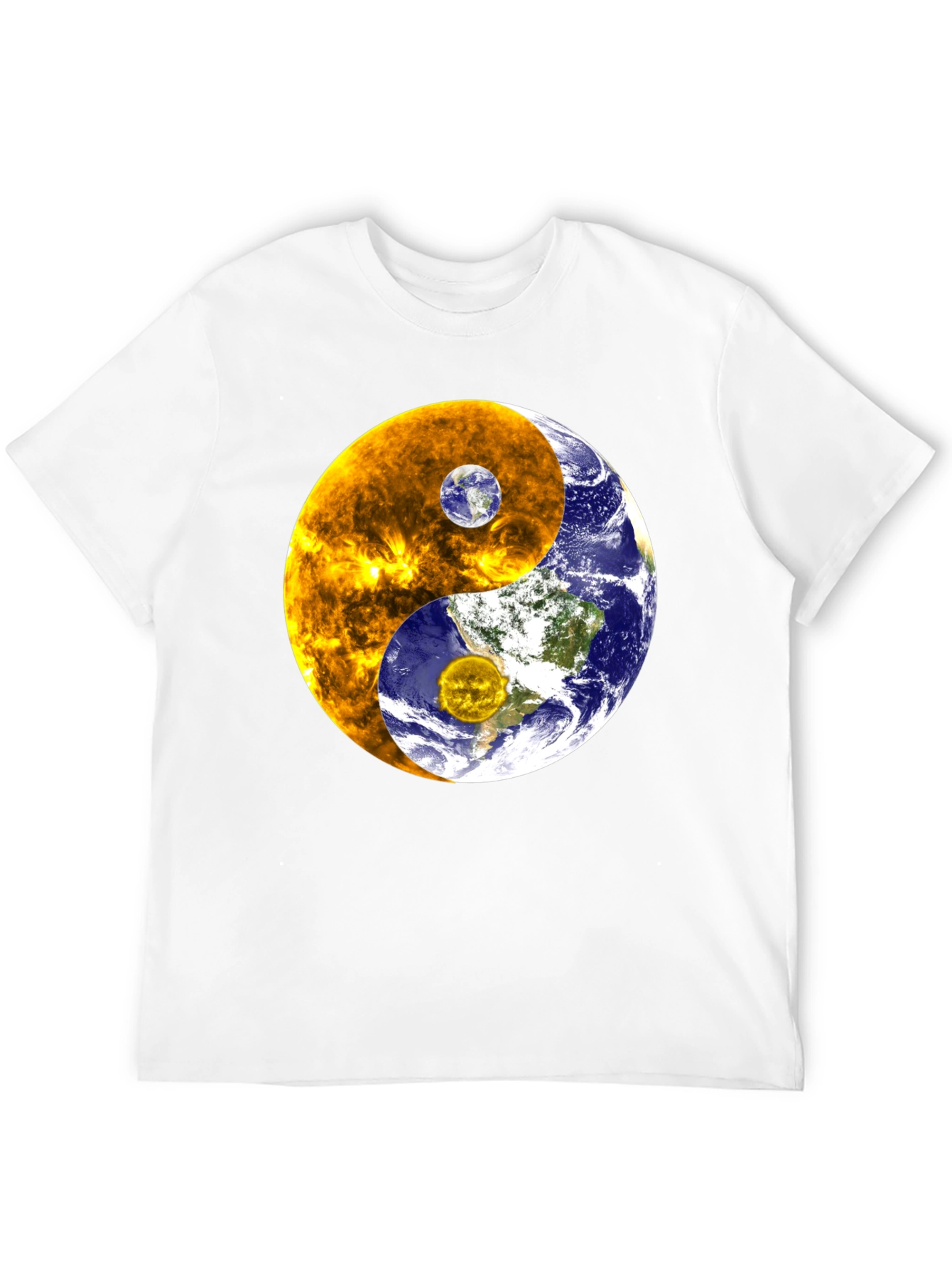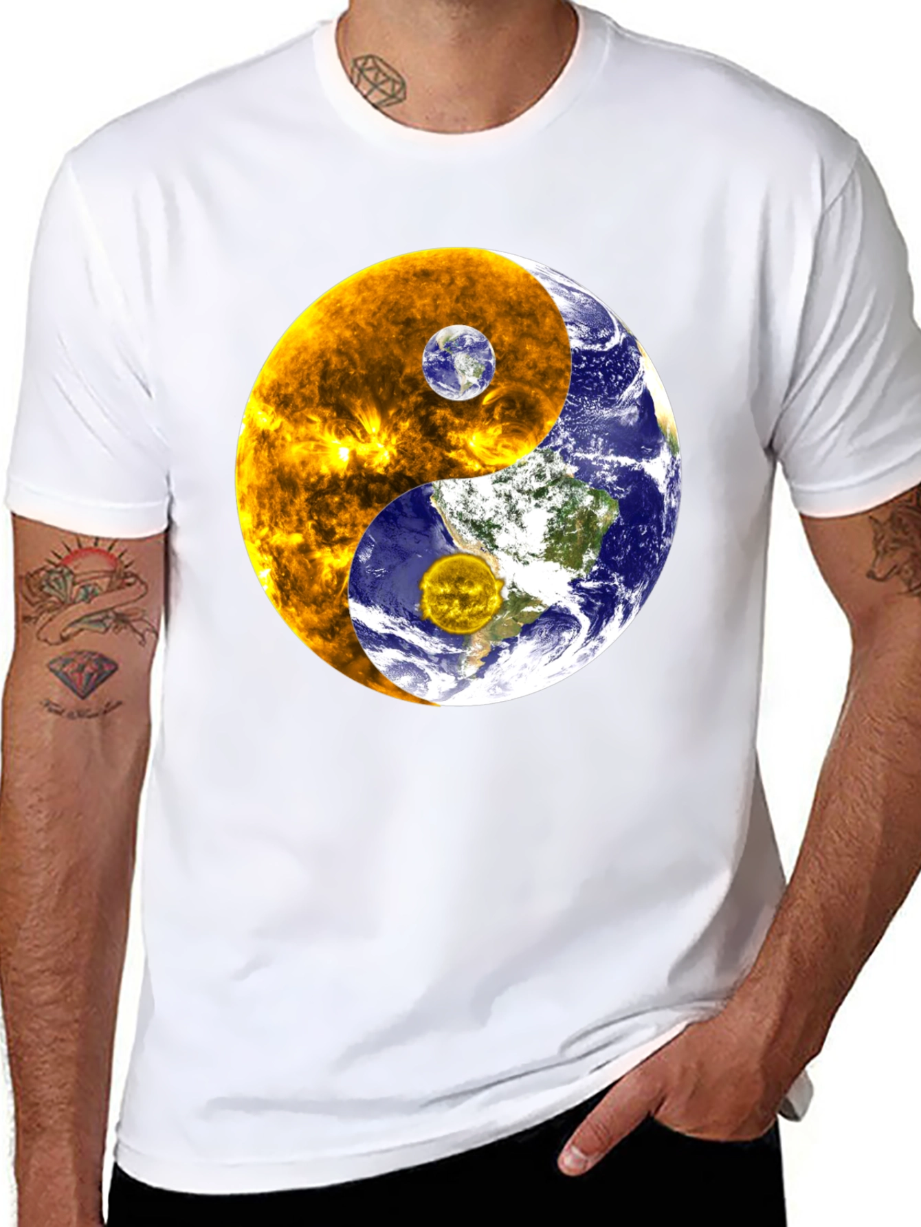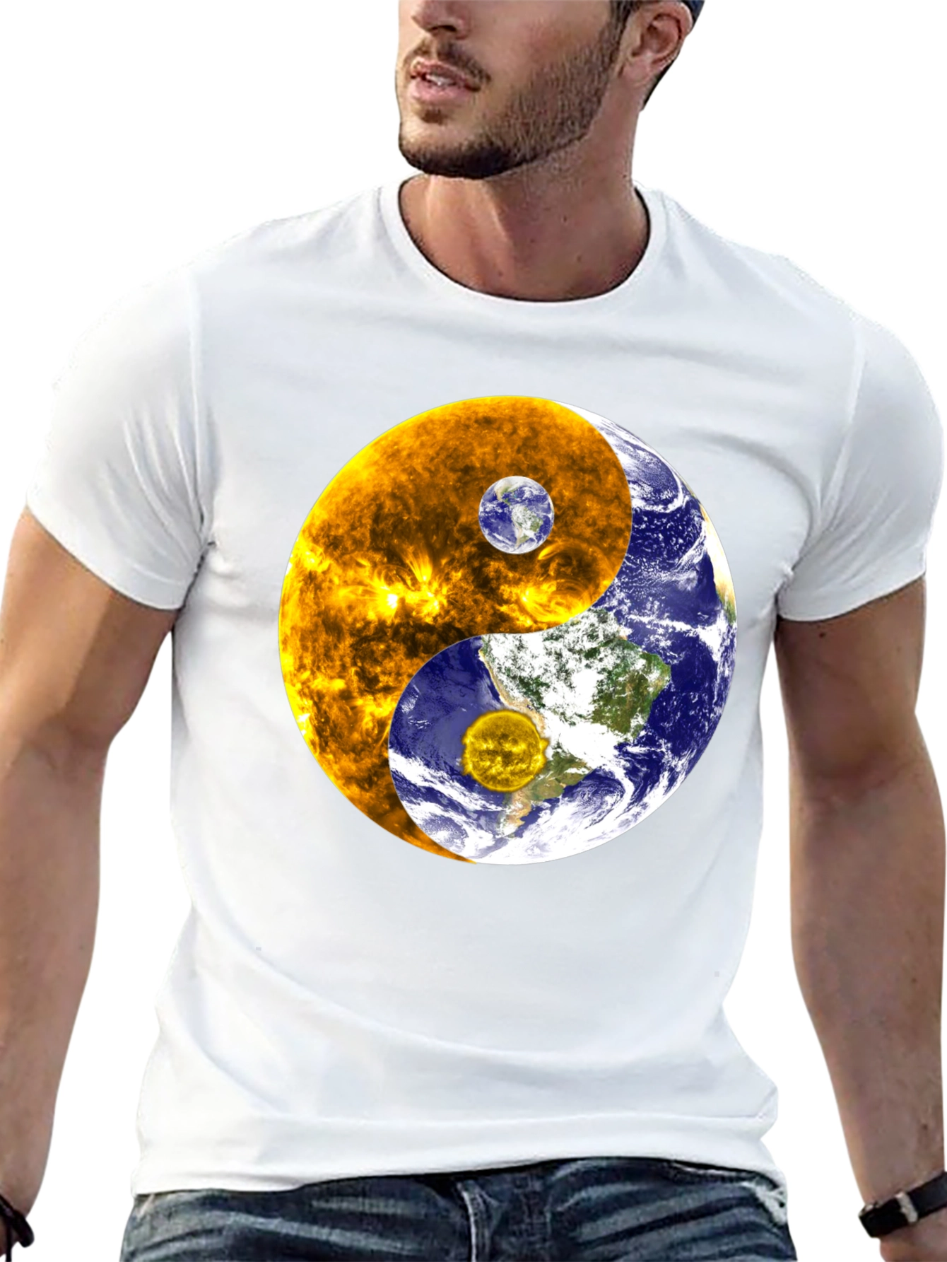 Luce esta original camiseta negra con un diseño Yin Yang único que fusiona el sol ardiente y la tierra exuberante. El diseño simboliza el equilibrio cósmico y la armonía universal. Ideal para aquellos que aprecian la conexión entre la energía solar y la vitalidad terrestre. Perfecta para vestir casual, destacar con un estilo llamativo y expresar tu pasión por el universo. Su tejido suave y cómodo la hace ideal para cualquier ocasión. ¡Adquiere esta pieza única y muestra tu conexión con el cosmos!