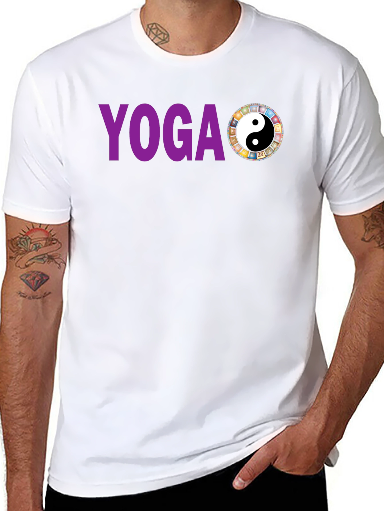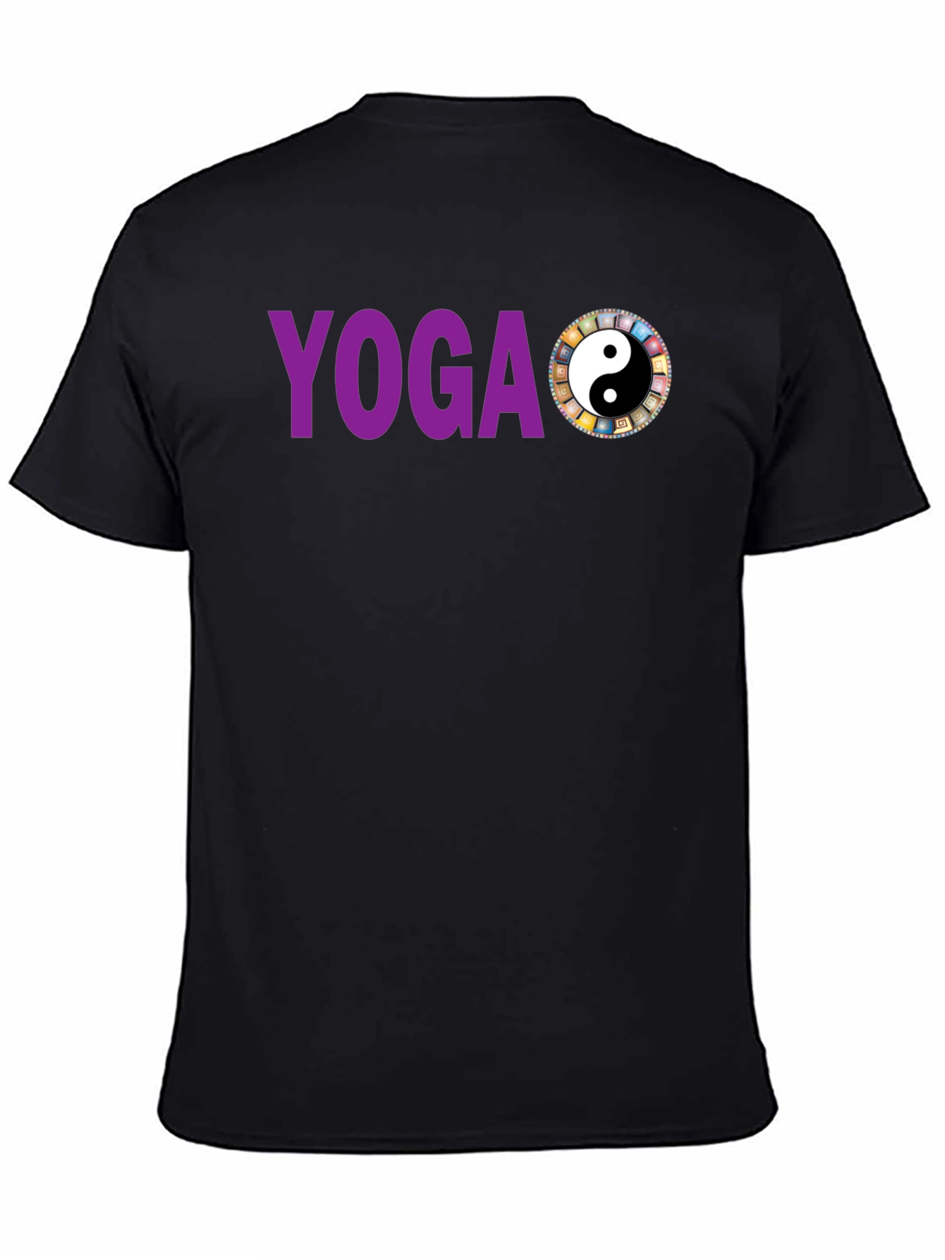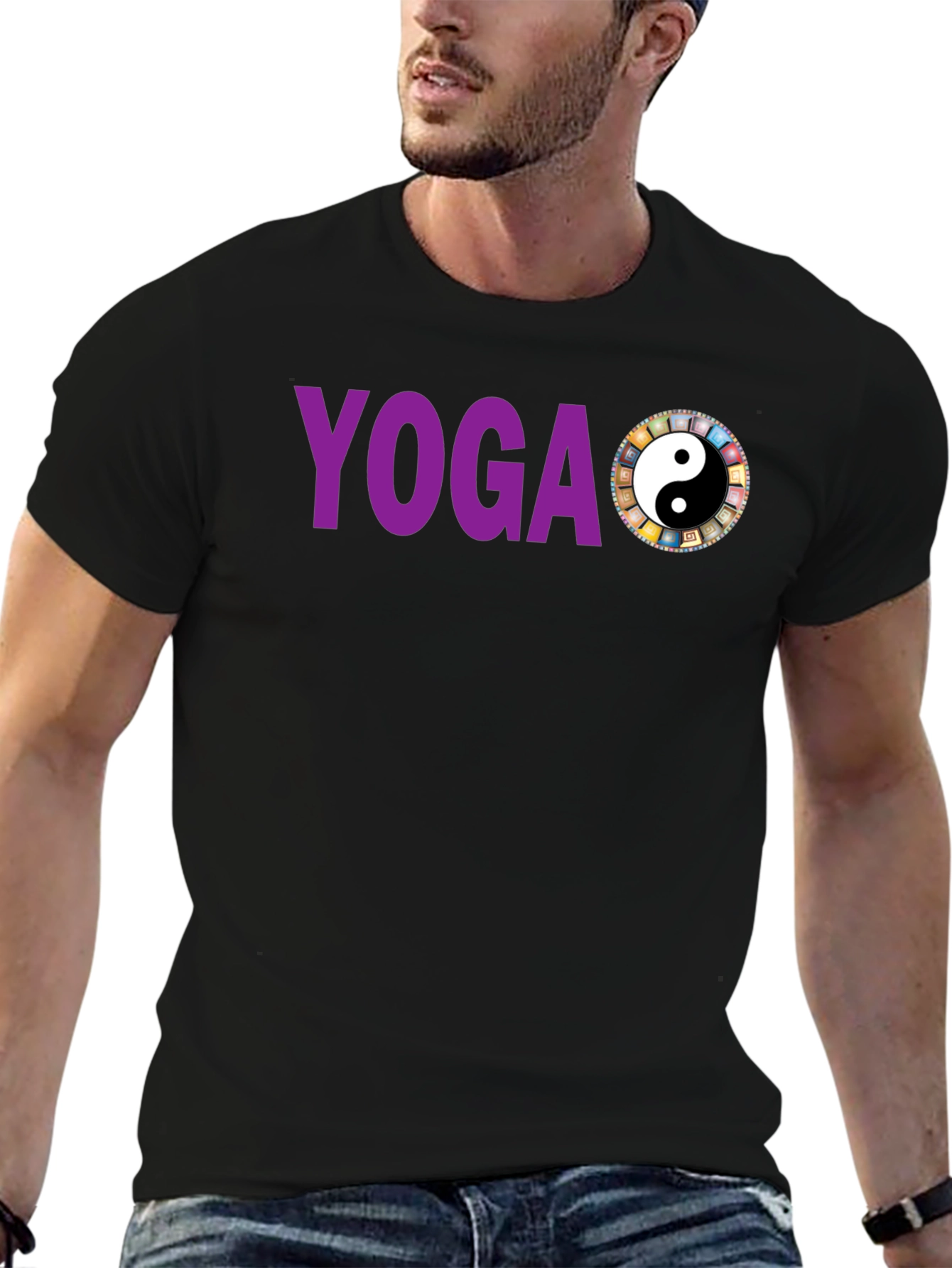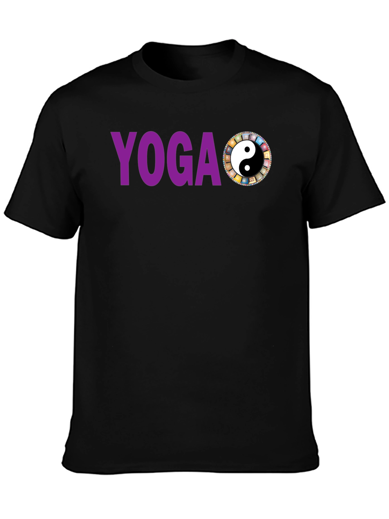 Descubre la perfecta armonía en esta camiseta de yoga para hombre. Confeccionada en suave algodón, esta camiseta negra presenta un llamativo diseño en el pecho con la palabra "YOGA" en color morado combinada con un símbolo Yin Yang decorado con diseños coloridos. Su corte clásico ofrece comodidad y libertad de movimiento, ideal para tus sesiones de yoga, meditación o para un look casual con un toque espiritual. Destaca tu pasión por el yoga con esta prenda única y de gran estilo. Perfecta para regalar a ese amigo o familiar amante del yoga y el bienestar. ¡Consigue la tuya y eleva tu estilo yogui!